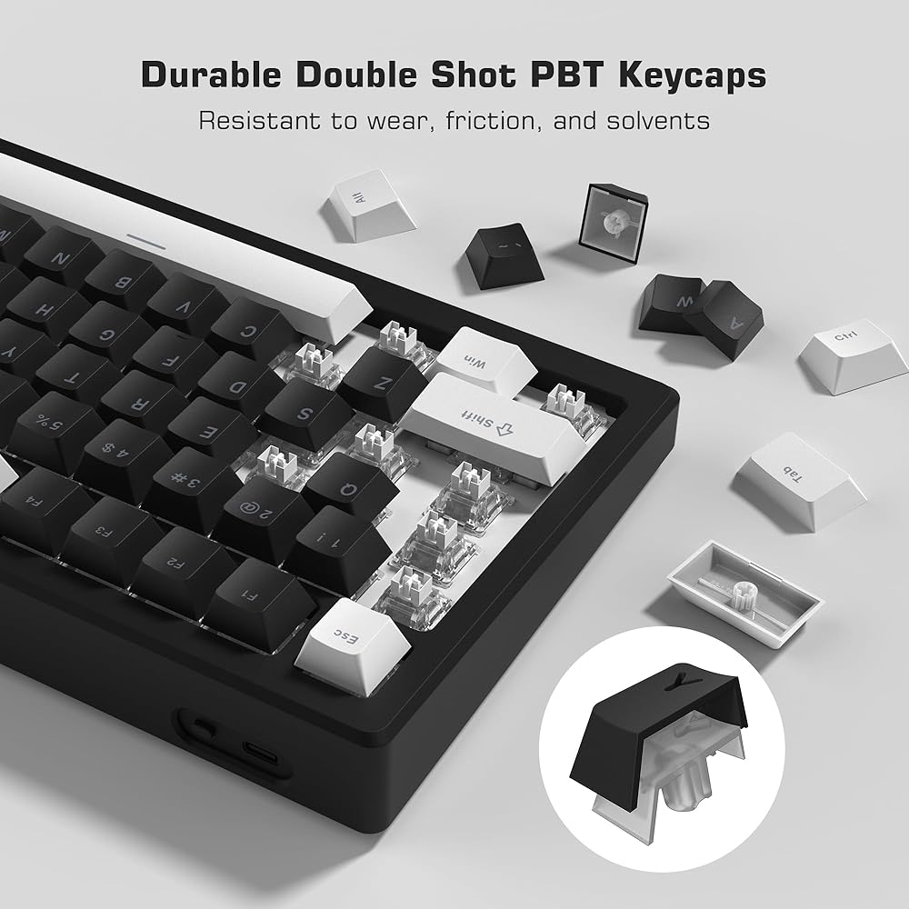 【Durable Doubleshot PBT Keycaps】The keycaps made of textured, high-grade PBT material, extra-thick key wall which is provided maximum durability and solid key presses.