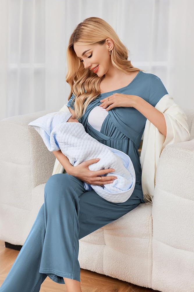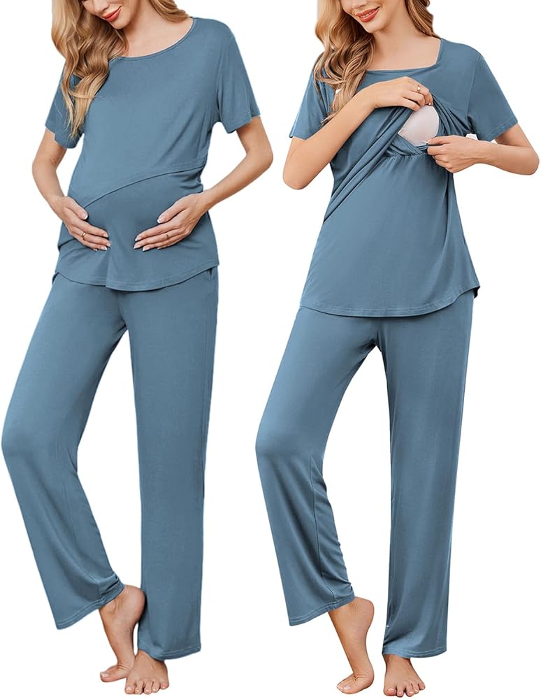 【3 in 1 Maternity Pjs】: Whatever you are pregnancy, labor, breastfeeding your baby after pregnancy, or just sleep wear, loungewear, hospital wear, going home pjs after birth, these are all comfortable pajamas set for you.