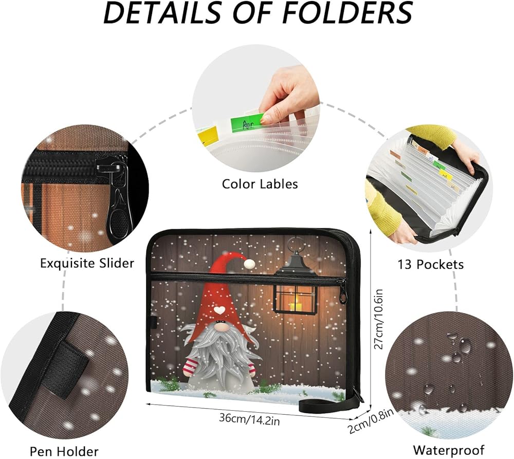 Large capacity: Measuring 14.2*10.6*0.8inch and 13 pockets inside to provide ample storage space. Each pocket is equipped with a colorful handwritten label for quick identification of the folder's contents.