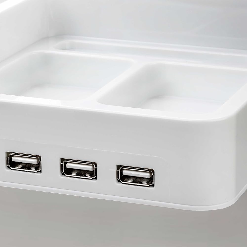 All-in-One Desk Organizer & Docking Station/Stand for iPad/iPhone/Tablets/Smartphones with 3 USB Ports