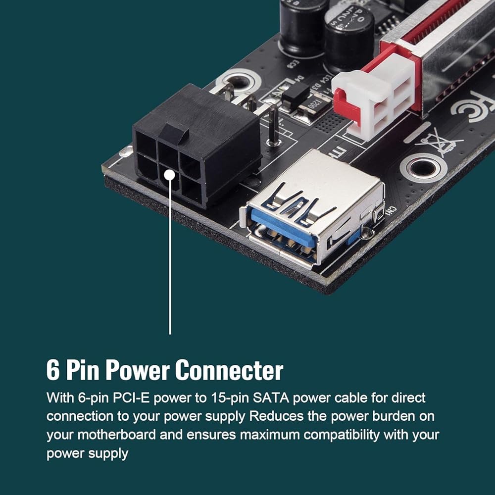 【PCI-E 1X to 16X Riser Card】VER010-X version, high-performance PCI Express riser card, which can extend the motherboard PCIE X1 slot to the PCIE X16 slot. Mainly designed for Ethereum/Bitcoin mining equipment or more GPU mining equipment.