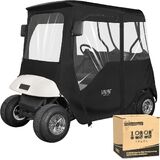 Made of durable superior 420D PVC coated oxford that provides you with full protection against rain, wind, snow, dust, scratch, and other harsh weather situations. It also keeps golf carts clean and dry in storage.