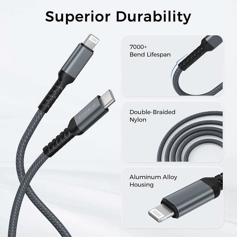 ⍟ EXTREMELY DURABLE ⍟ --- Constructed with a double-braided exterior and aluminum alloy connectors, our product is a sturdy cable that you can rely on. It boasts a 7000+ bend-tested lifespan, which enables to endure daily wear and tear.