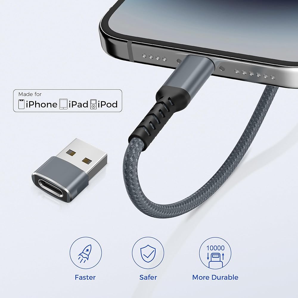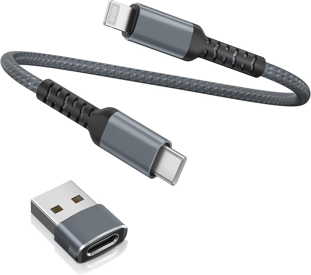 Basesailor Short 1FT iPhone 14 13 Charger Cable,USB C to Lightning Cable with USB A Adapter,Fast Charging Power Cord for Apple iPhone 12 11 Pro Max Plus XS XR X 8 7 6 Plus 5 SE,iPad 9 8th 9th Gen