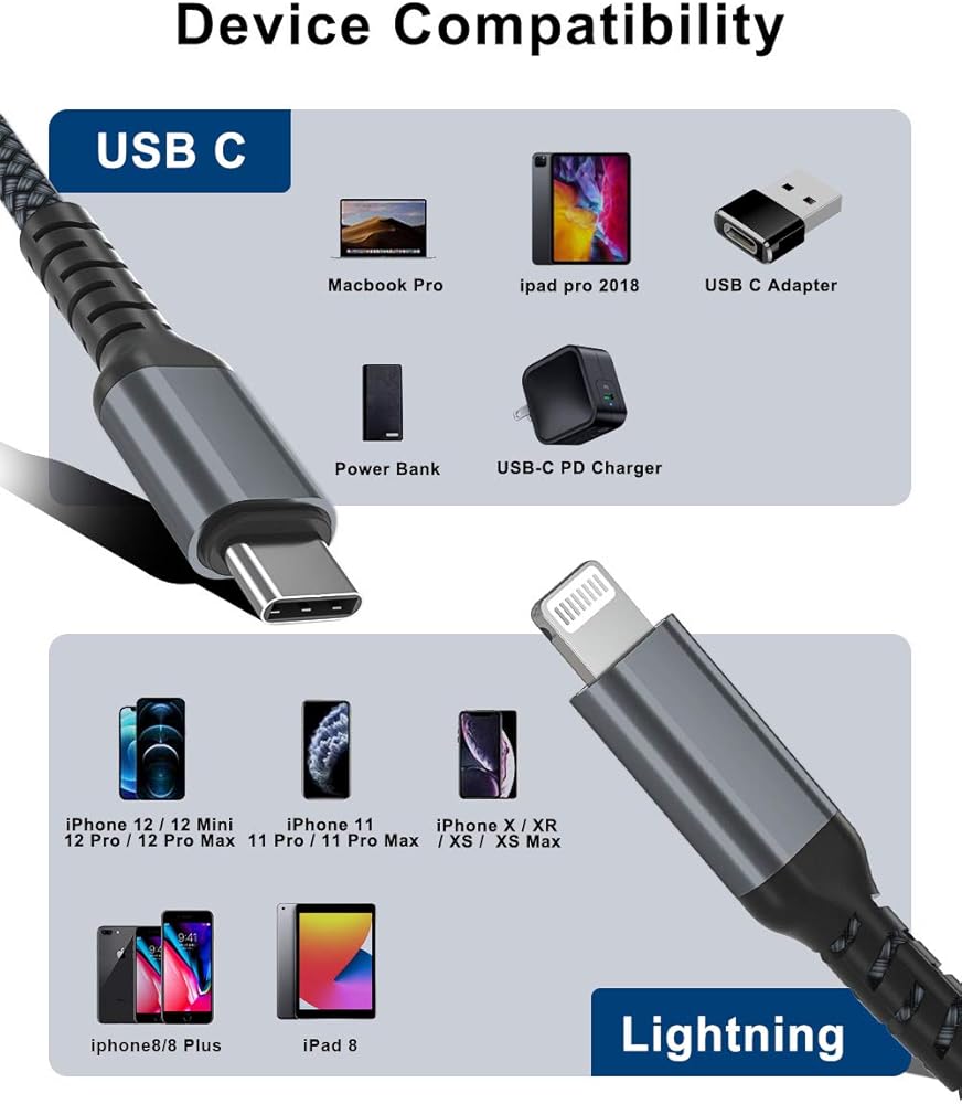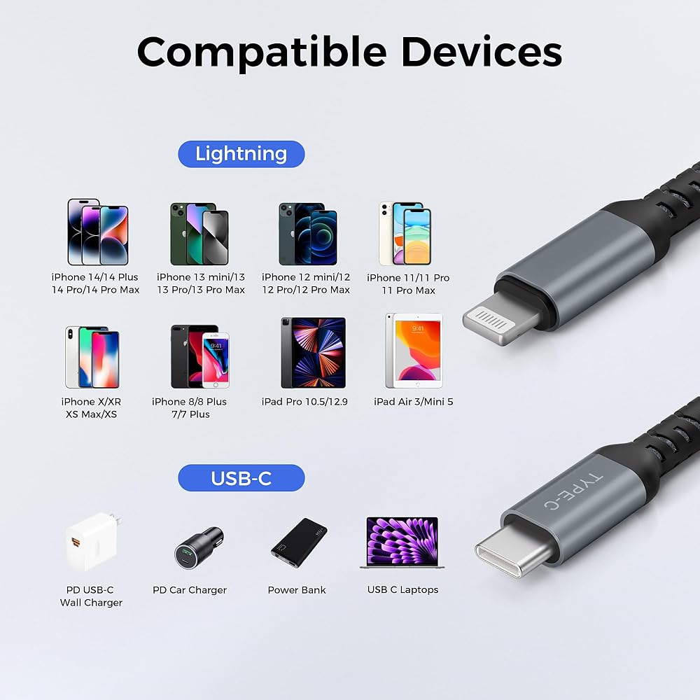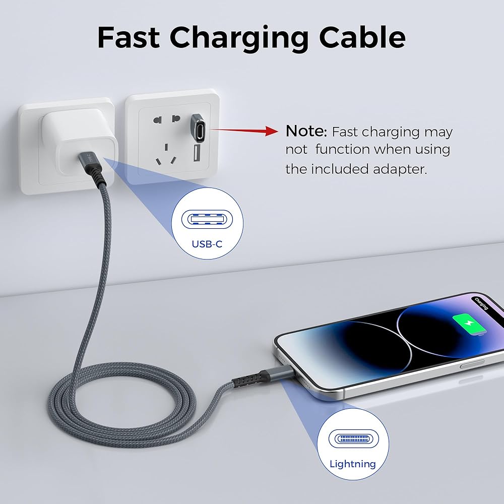 ⍟ SUPPORT USB-PD PROTOCOL ⍟ --- You can benefit from the latest speed boosts these cable brings when charging your Apple devices with a USB-C adapter that supports USB Power Delivery. Fast charging won't be a problem!