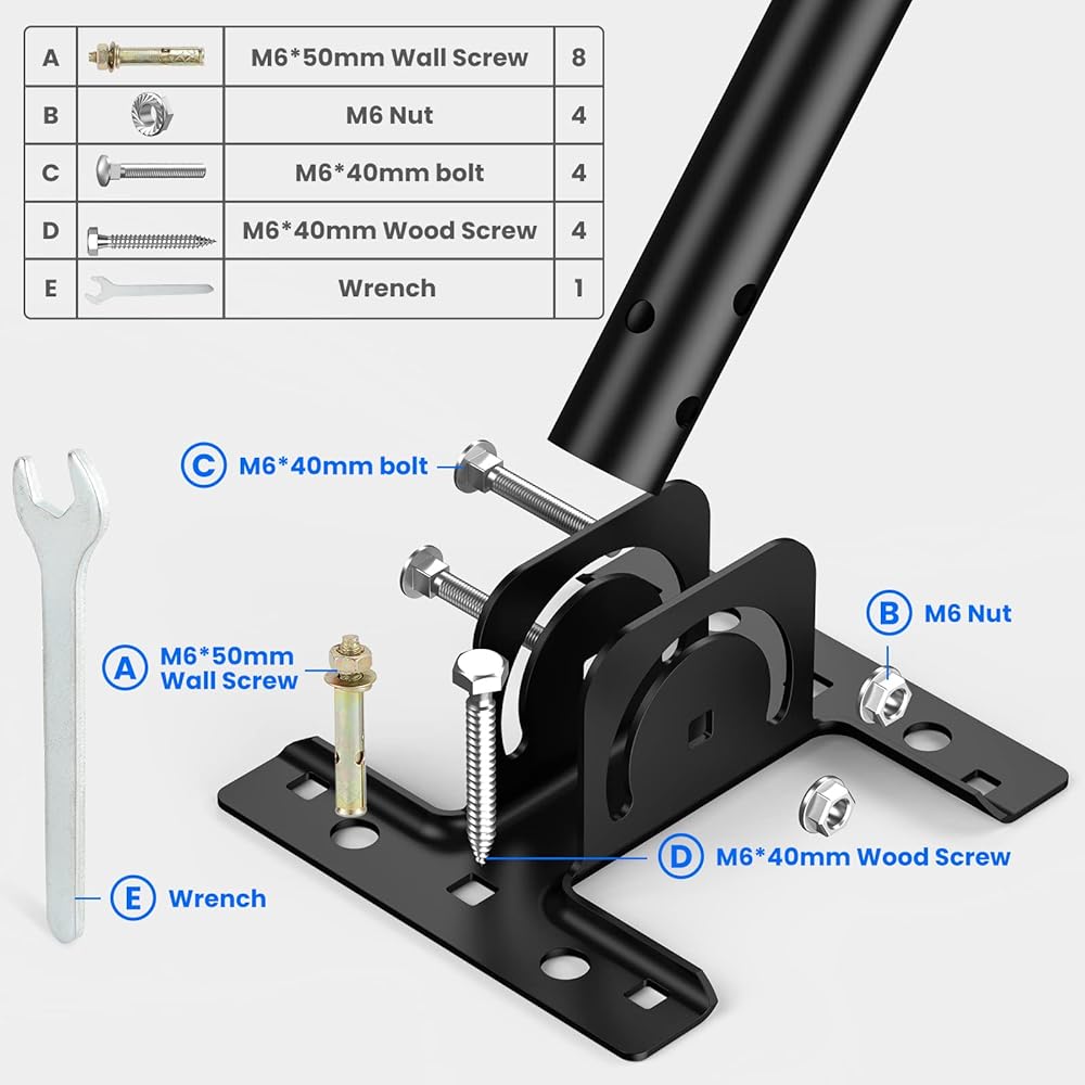 Two Installation Methods: This pole mounting kit can be installed on a pole or wall-mounted, both installation methods are very simple, you can choose according to your needs