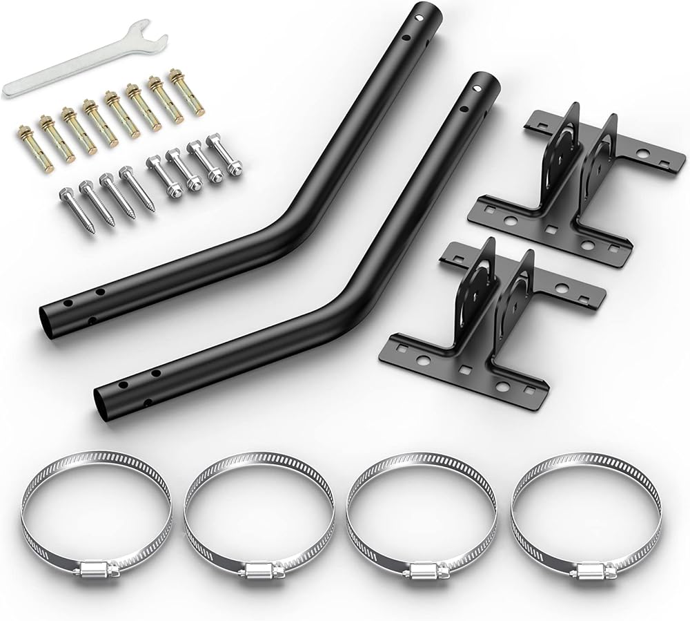 Specification: The pole mount brackets length is 16.5"(42cm), base width is 4.7"(12cm), tube diameter is 0.98"(2.5cm). Package includes 2pcs mounting bracket, 4 gasket screws, 4 self-tapping screws, 8expansion bolts,4 hose clamps and 1 wrench