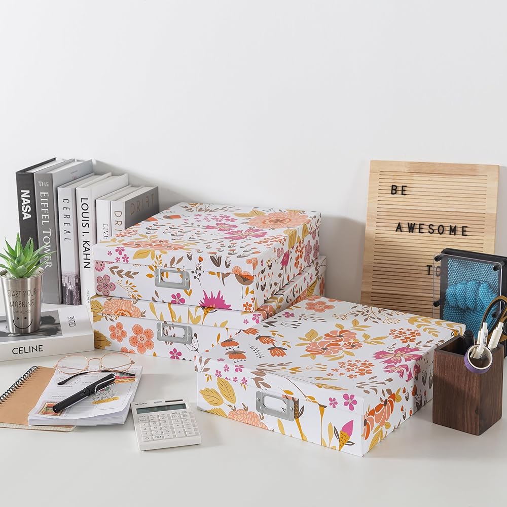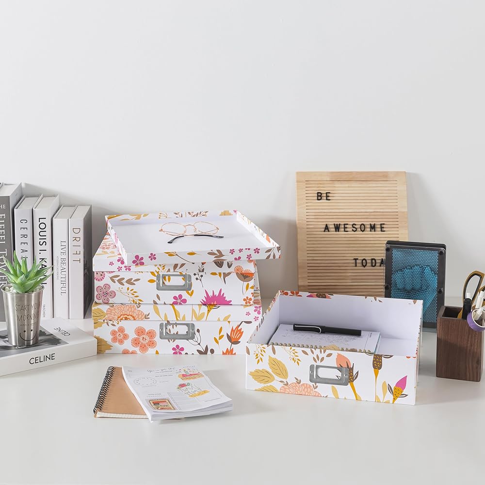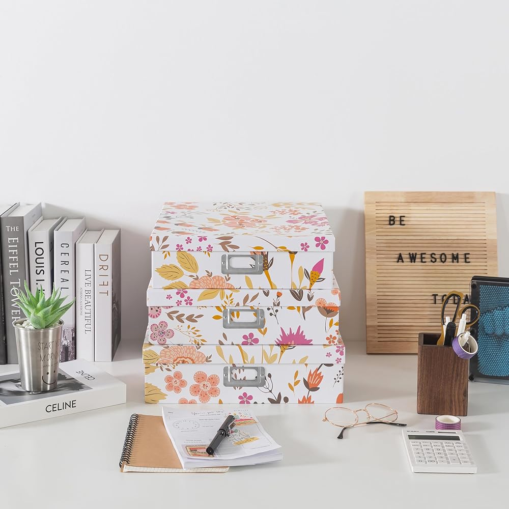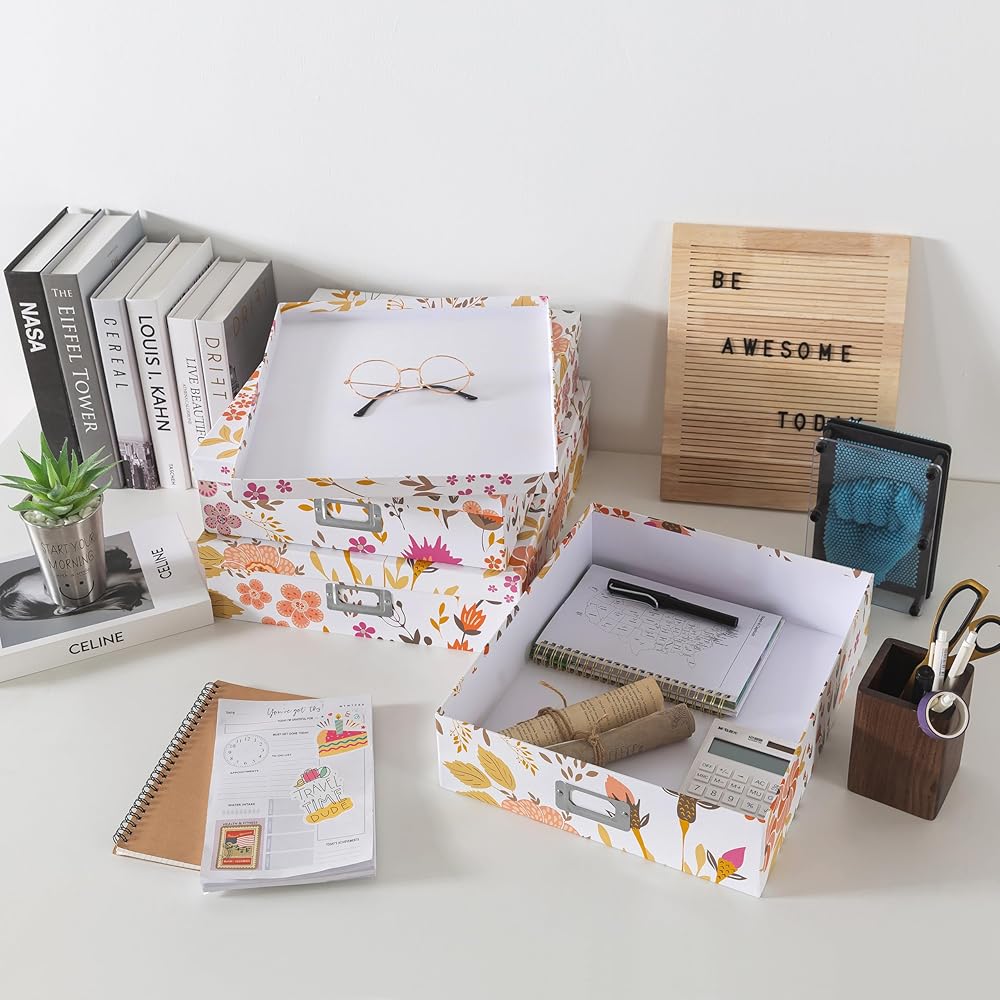 CONTEMPORARY HOME & OFFICE ORGANIZATION: Maintain a tidy workspace with these decorative storage boxes, perfect for storing stationery supplies, work essentials, and more. Stackable and stylish, these document boxes with lids provide a chic solution for keeping your items organized and within reach.