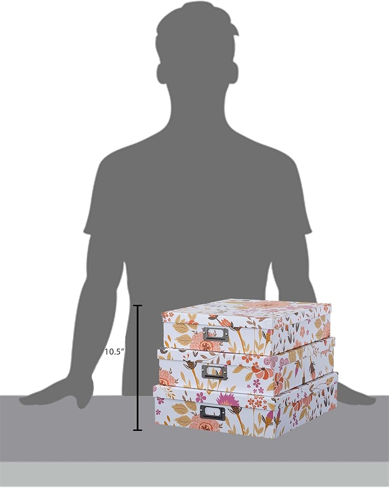 MODERN BOTANICAL DESIGN: Featuring a trendy black and white botanical print, these decorative cardboard storage boxes enhance the look of any space, whether holding papers on a bookcase or jewelry and accessories in a bedroom.