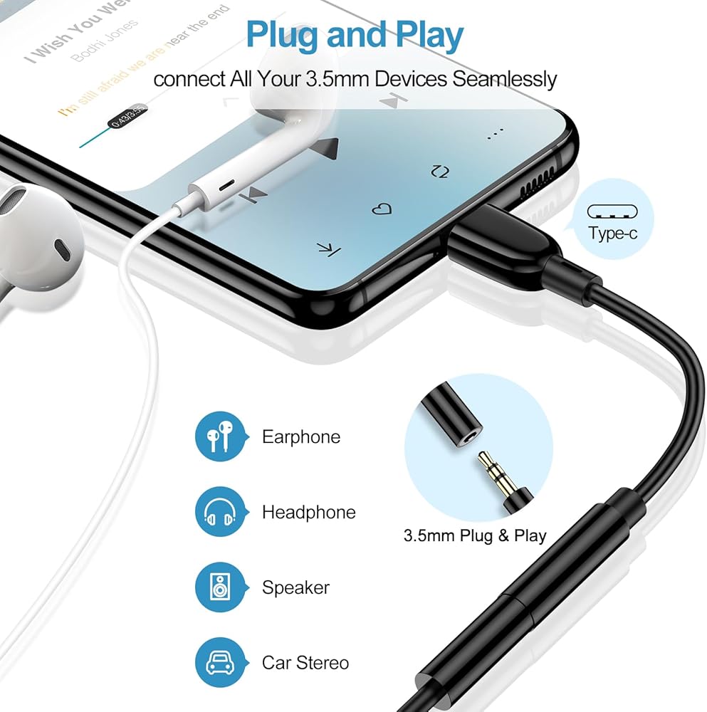 【Plug and Play】: Type c samsung galaxy s24 ultra audio adapter is design for usb c devices without audio jack to headphones, earphone, headset, speakers and other audio devices. Just plug in to 3.5mm audio aux jack adapter, call, volume control, pause via function keys on the headphones are possible, enjoy pure high fidelity sound quality.