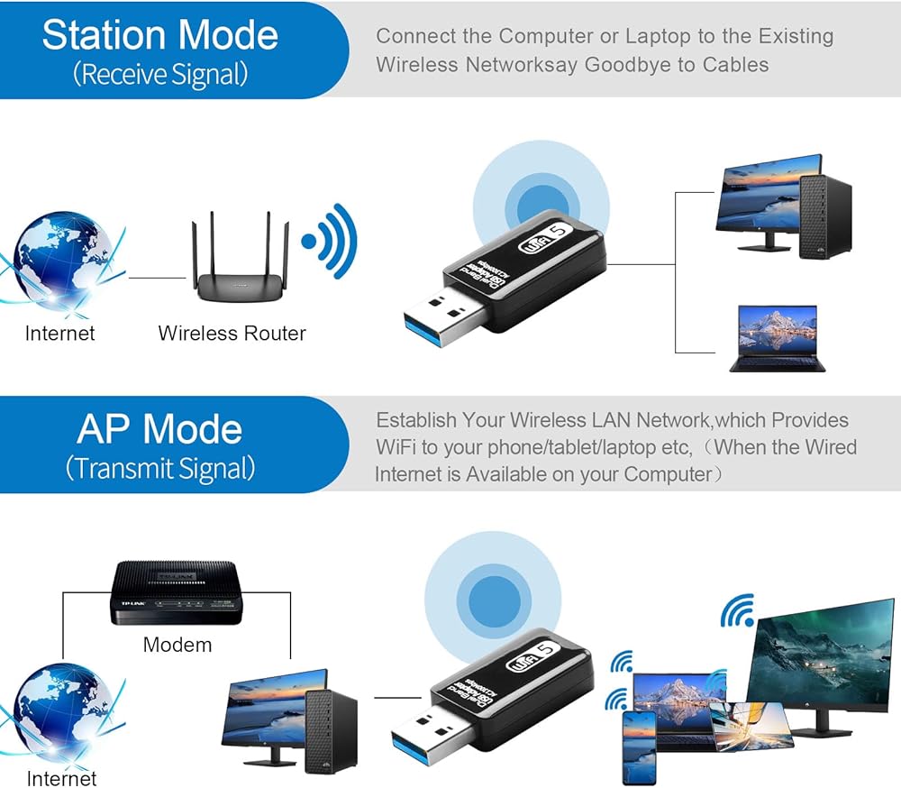 【يدعم جميع أجهزة توجيه WiFi ووضع AP】يمكن استخدام محول WiFi AC600 USB هذا لترقية جهاز الكمبيوتر أو الكمبيوتر المحمول أو Mac للعمل مع أحدث جهاز توجيه WiFi AC للحصول على سرعة أسرع ونطاق ممتد. باستخدام وضع Soft AP، يمكنك أيضًا تحويل اتصال الإنترنت السلكي إلى نقطة اتصال Wi-Fi، مما يوفر إشارة Wi-Fi لأجهزتك المحمولة.