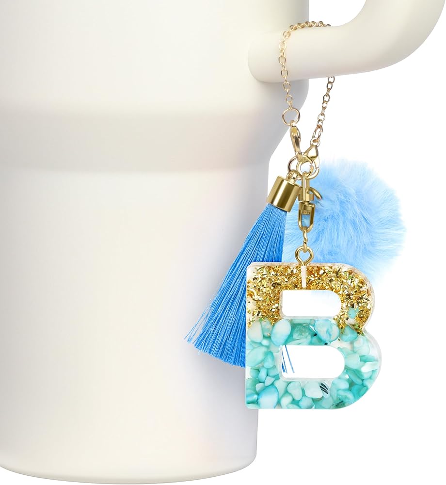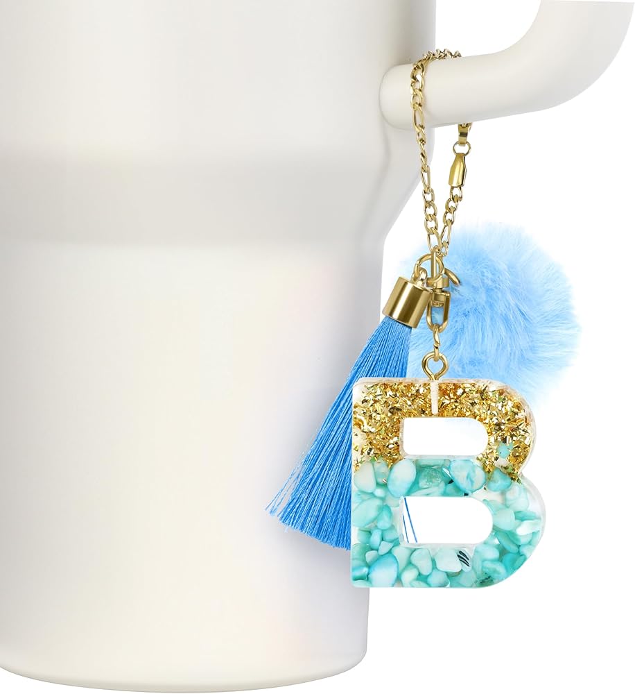 💙【حرف لطيف】تصميم حروف رقيق ولطيف، تمت إضافة حروف الراتنج أيضًا مع بتلات سماوية، جميلة جدًا، علامة فريدة لكوب ستانلي الخاص بك.