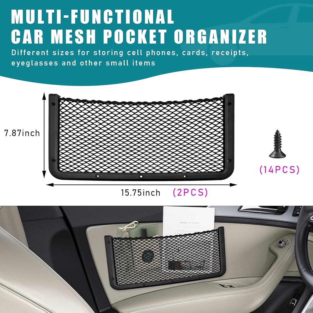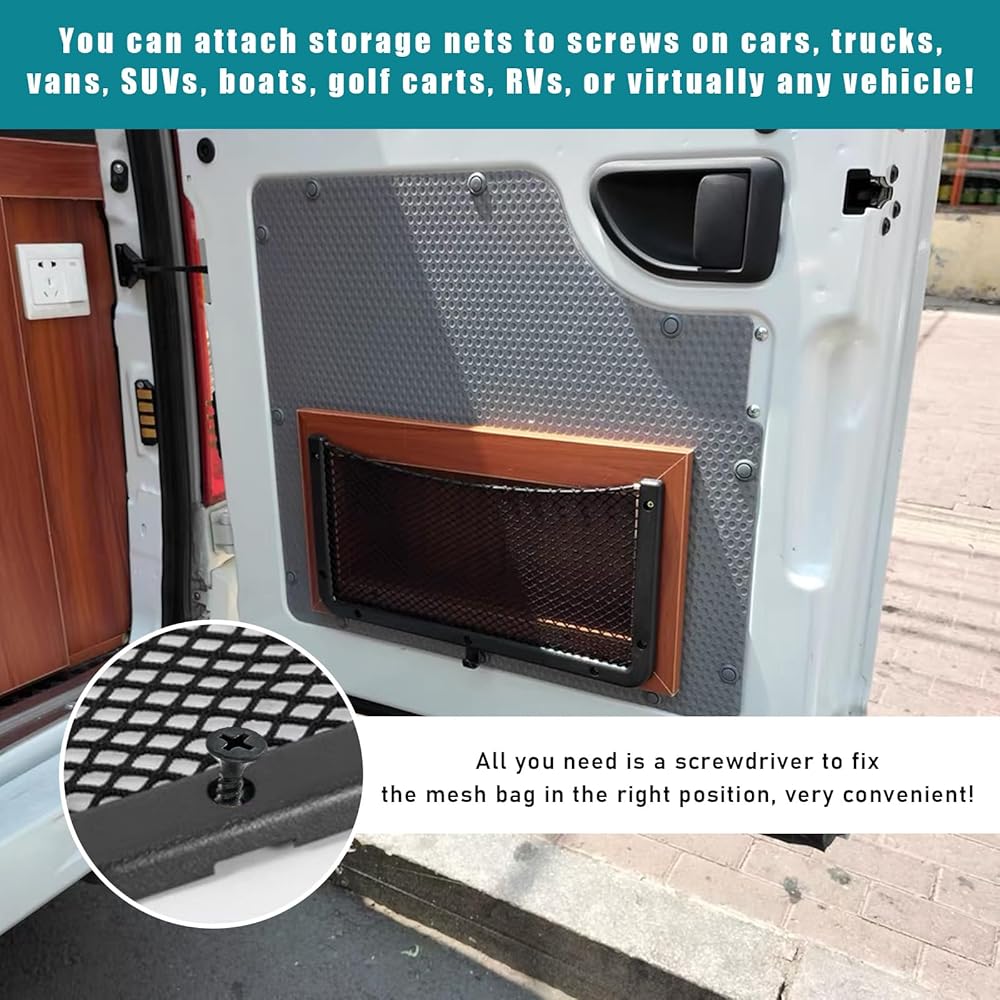 【Wide Application】: It is simple to operate, just screw the screws to the corresponding installation position on the mesh bag. It can be used to fixed on the back seat of most vehicles without affecting the use of leg space. It can also be installed on RVs, boats, walls or doors at home, and other places where screws can be easily fixed.