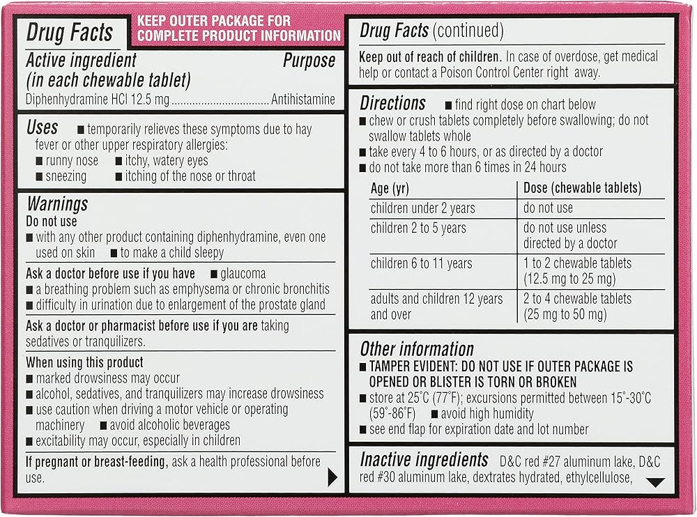 MULTI-SYMPTOM RELIEF: For kids ages 2 years & up, this chewable allergy medication relieves sneezing, runny nose, itchy, watery eyes, and an itchy throat or nose. Compare to the active ingredient in top brands in children's allergy.