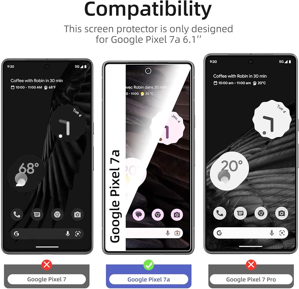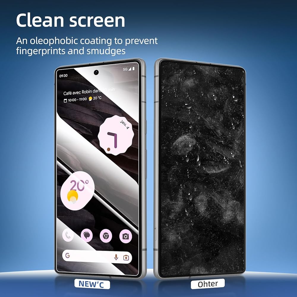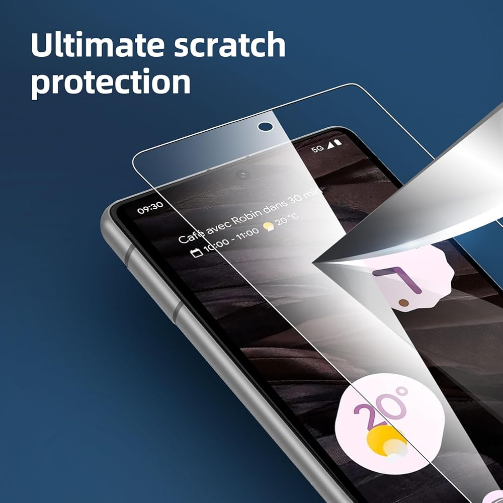 NEW'C Google Pixel 7a Tempered Glass Screen Protector, delicate touch: coated on the back with a solid silicon adhesive which makes installation easy and attaches the film firmly so as not to affect the sensitivity of the touch screen