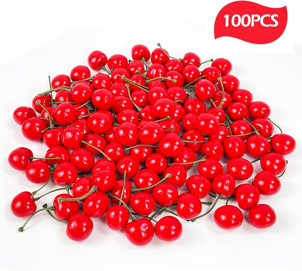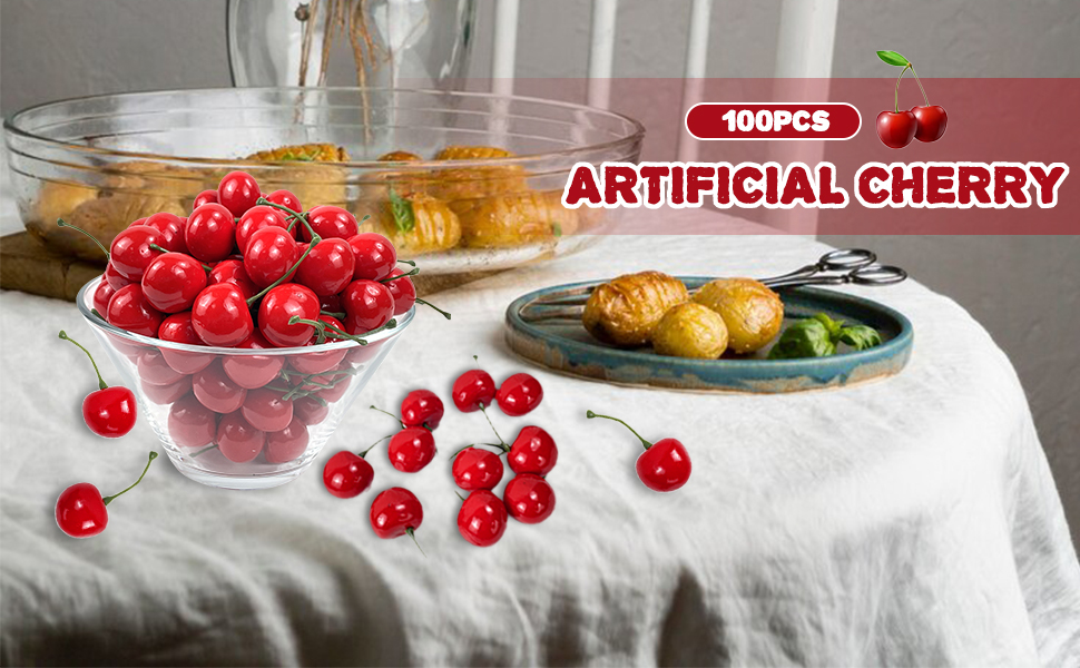 🍒 【Package included】 You will get 100 pieces of artificial cherry, enough quantity to meet your use and replacement needs in daily life; which with realistic cherry surface, beautifully detailed and look a bit more shiny than real cherries; Used for floral sundae centerpiece. Very lifelike.