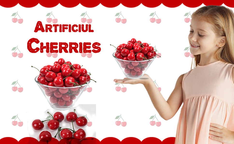🍒 【Widely used】 The artificial cherry decor are great for fruit displays, wine decor, home decor, kitchen decor, market decor, pub ornaments, wedding party decor, Christmas decor, lifelike strawberries are also good teaching aid, game props, photography prop, decorate your fruit plate bowl.