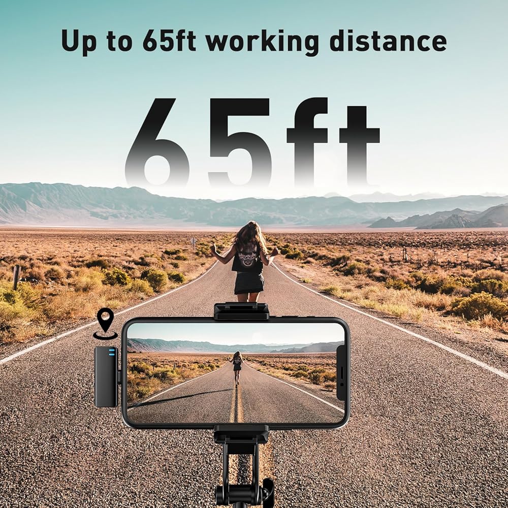 【65ft Long Distance Transmission, Low Latency】The Wireless mic has stable 2.4GHz wireless transmission, Latency as low as 0.009s, easy to achieve 20 meters/65ft long-distance wireless audio, omnidirectional sound reception, HD sound quality restore high-fidelity original sound. Also support dual microphone simultaneous recording, which is more widely used.