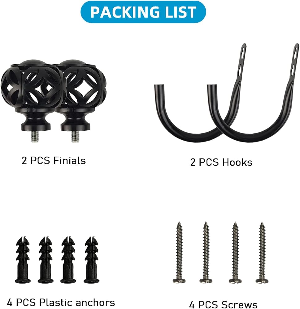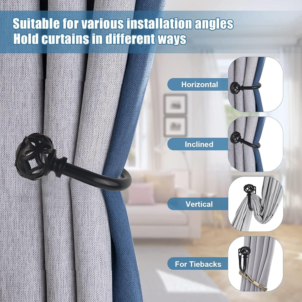 😀FUNCTION : For contains and drapes help to frame your window and let light in. The holdbacks have a black finish and a knob style finial adding a touch of style to your window treatments and perfect shower towel hooks.