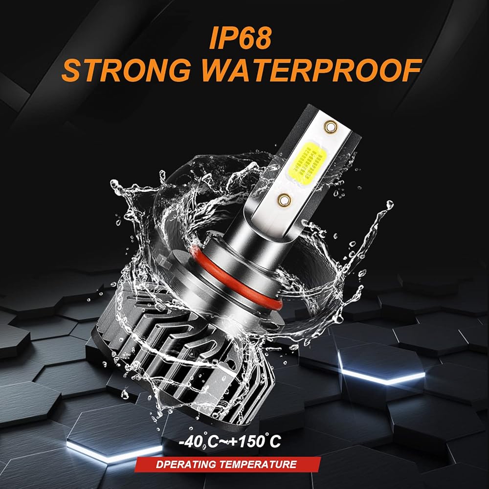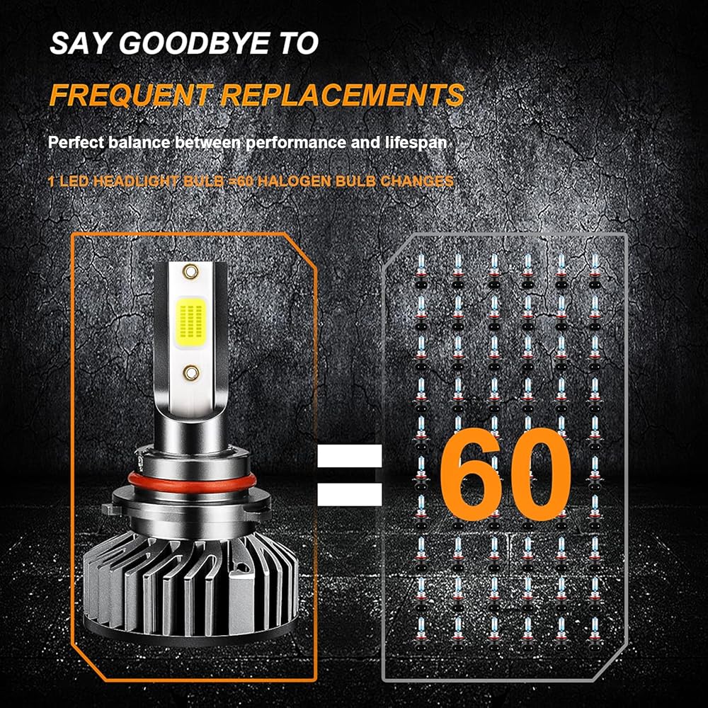 50,000Hrs LONGEVITY: Aluminum heat sink and 12,000 RPM Turbo Cooling fan with high efficiency cooling to ensures your LED headlight bulbs Over 50,000hrs of brilliant continuous light. Control driver has intelligent control chip, can monitor fan speed for optimal heat protection and performance and provide wide voltage, constant current IC.