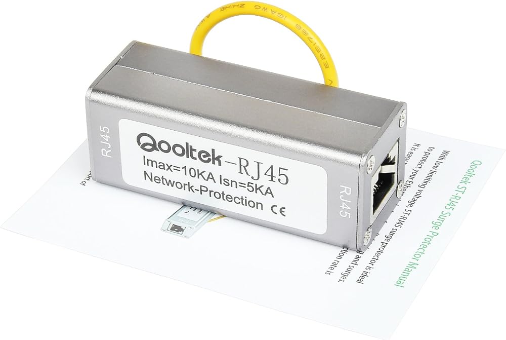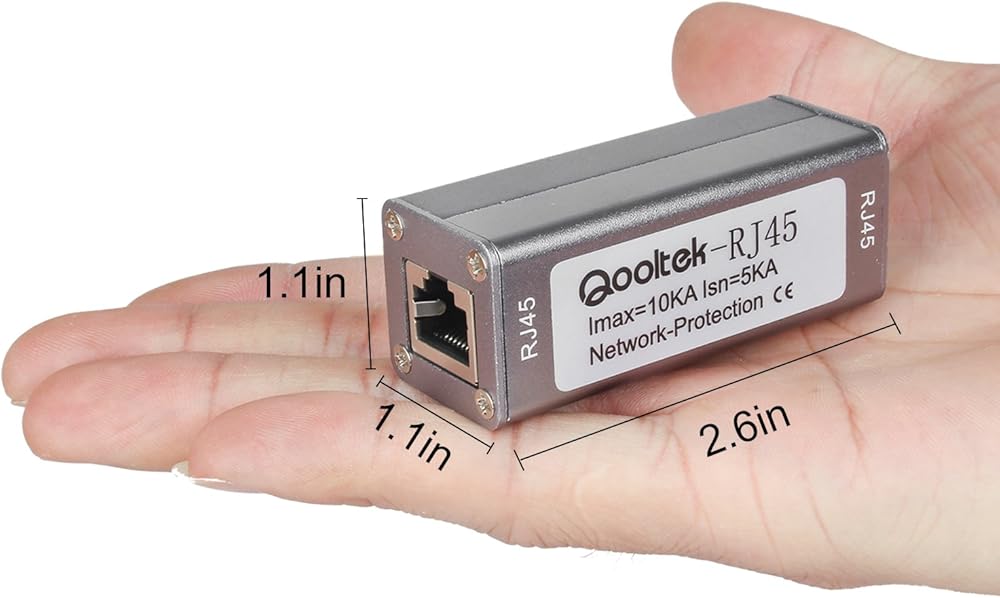Qooltek ST-NET Ethernet Surge Protector for 10/100/1000 Base-T PoE+ Gigabit Modem Thunder & Lighting Protection ST-RJ45