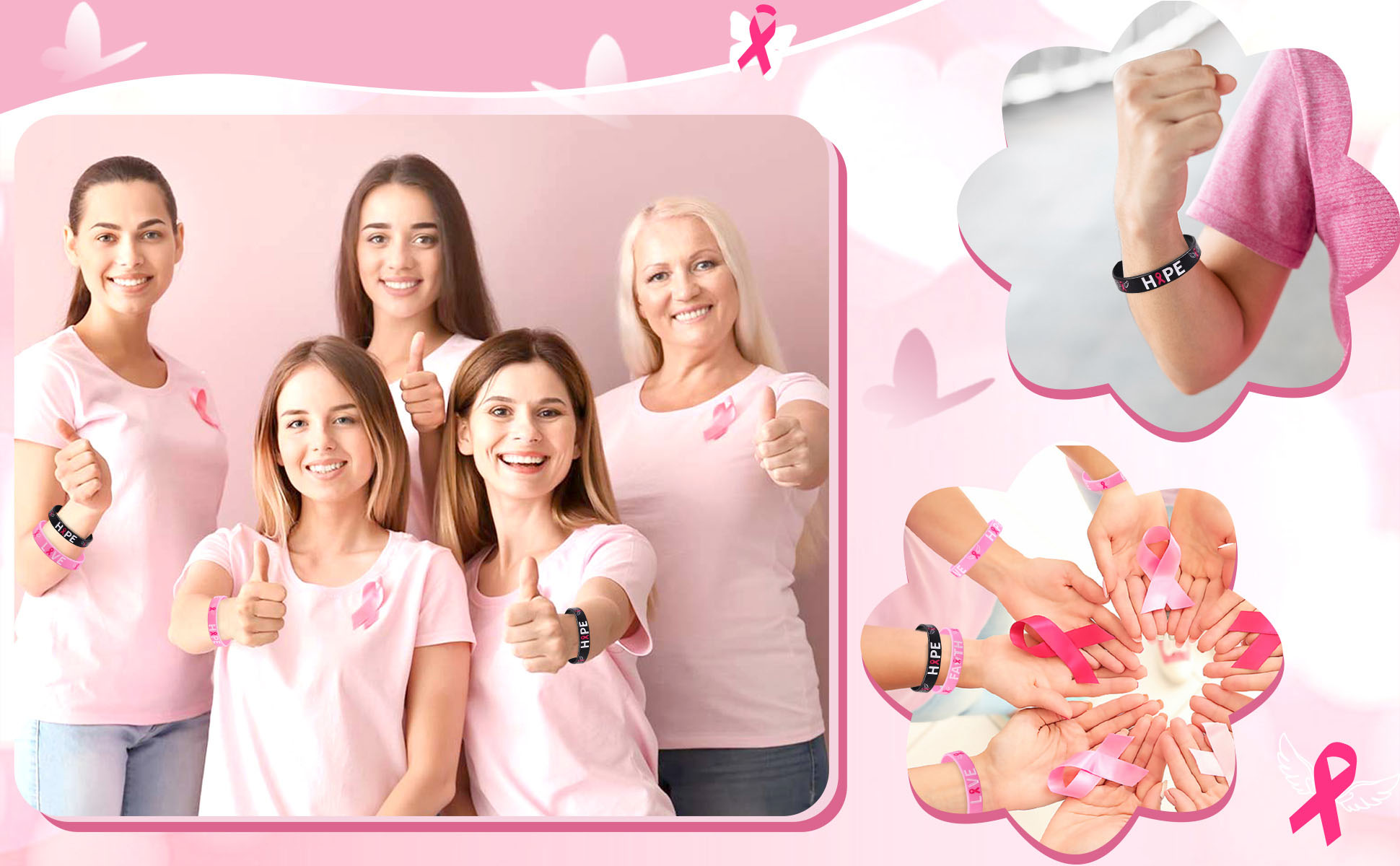 • 【MEANINGFUL DESIGN】-These breast cancer awareness wristbands are designed with pink ribbon patterns and encouraging words, like ‘HOPE', ‘LOVE', ‘FAITH', which are full of elements that motivate people to keep fighting with breast cancer and help raise awareness of breast cancer.