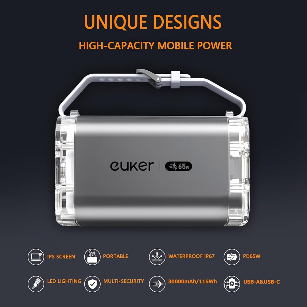【See-Through Power Bank Design】With a transparent design,Euker large capacity power bank reveals its exquisite internal structure, including the equipped lighting and circuit layout, demonstrating the beauty of technology from the inside out.