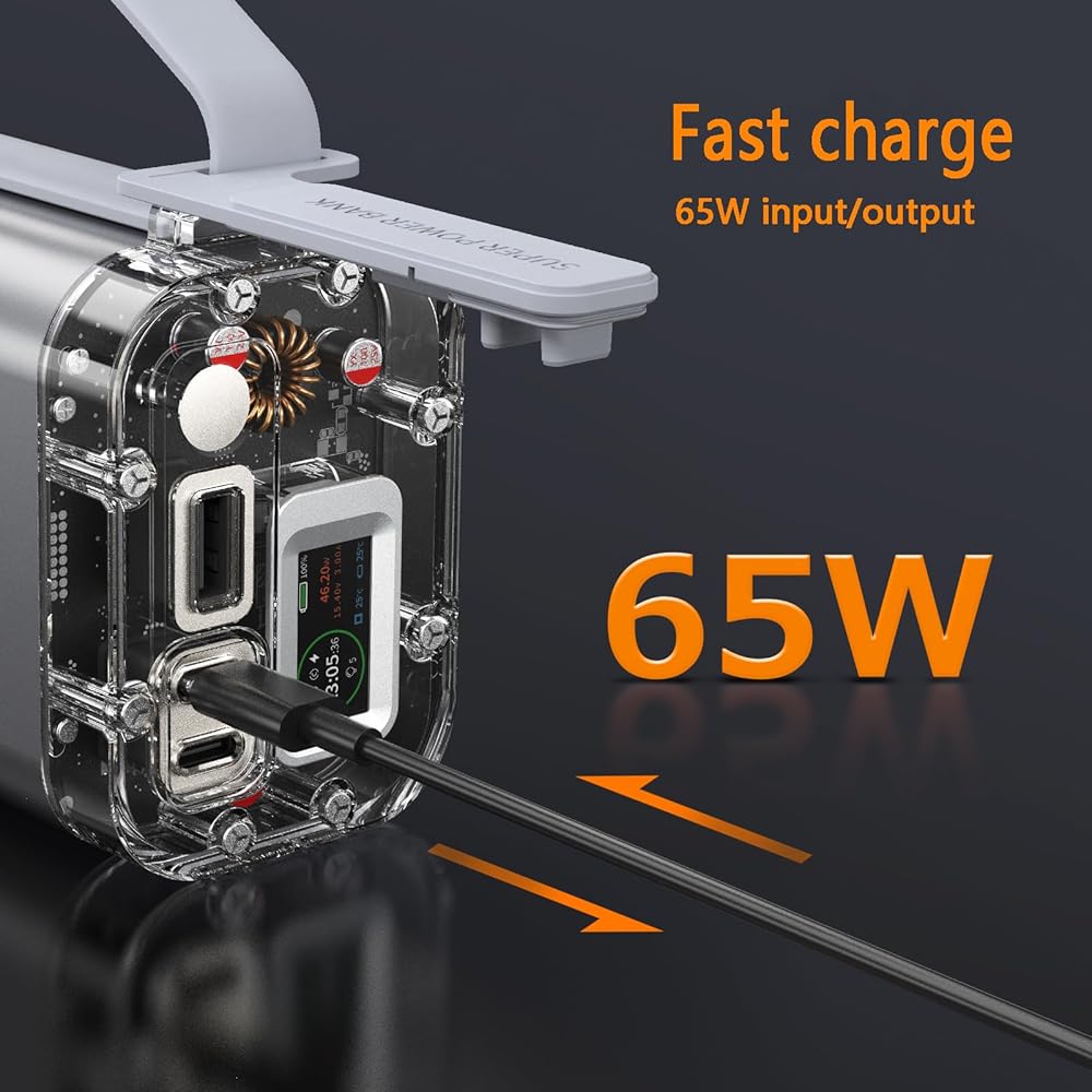 Power Bank 30000mAh 65W Laptop Portable Charger 3 Ports, IP67 with LED Lights and See-Through IPS Screen, Power Station Battery Pack for iPhone Series, Samsung, MacBook, Dell, ipad,etc