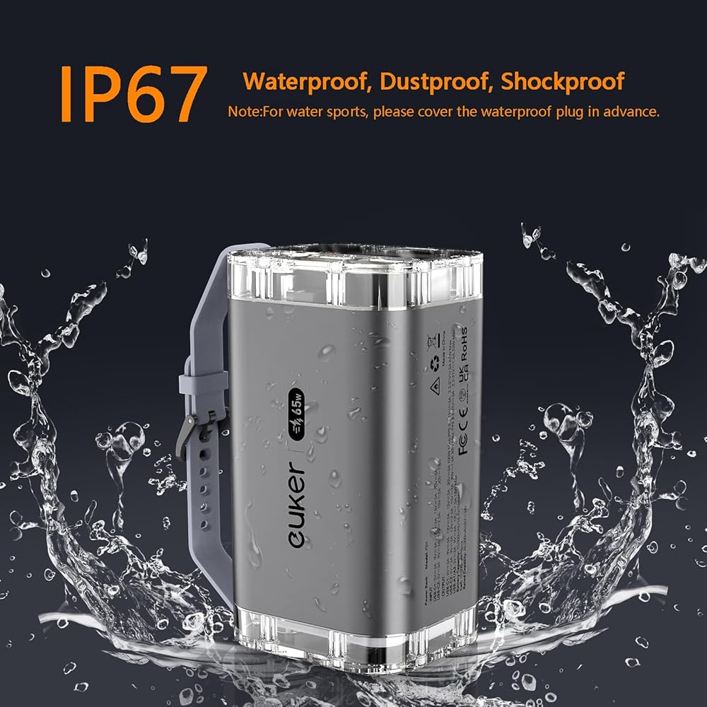 【 IP67 Waterproof 】The portable power station is IP67 level waterproof,the power bank makes you enjoy your oceanic activities while charging,and you can even no worry about the charger to get dropped in the water.Enjoy the water time with peace of mind!