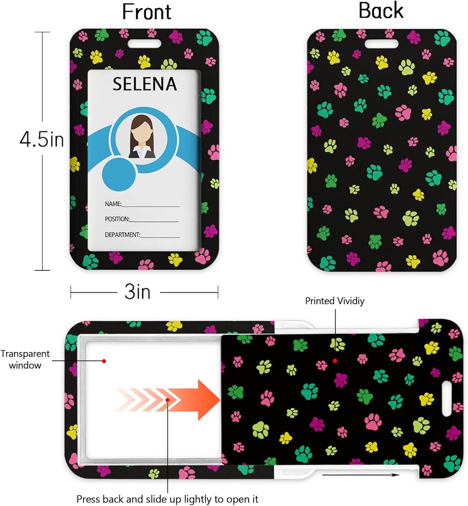 【Quality and Cute Card Holder】This cute ID card holder is made of high-quality plastic. It is thin and light, easy to carry and use. The clear window is very suitable for displaying or scanning your ID card, work card, credit/debit cards or business cards. Just press the back of the holder and slide lightly, you will open the holder and put cards in.