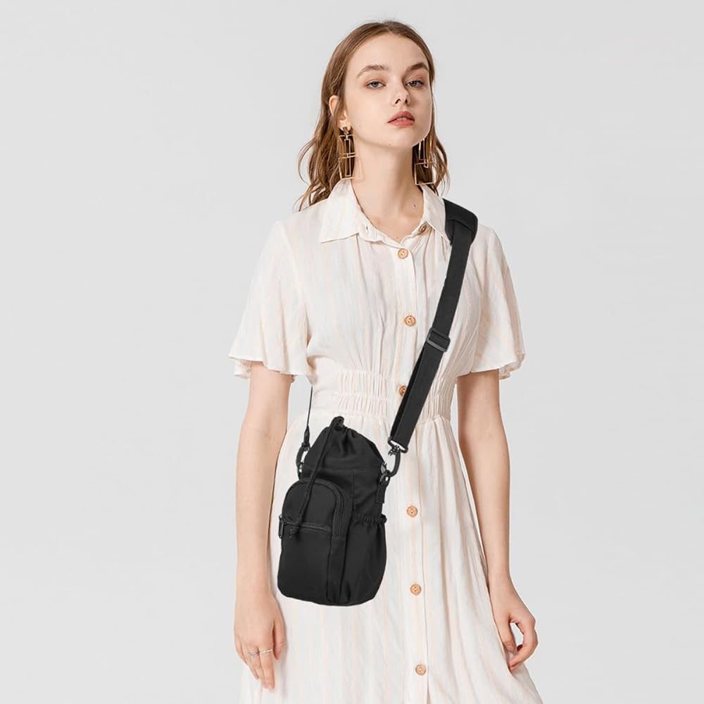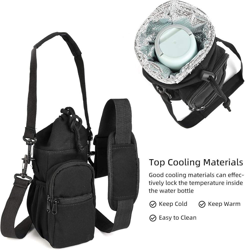 Valleycomfy Water Bottle Holder with Adjustable Shoulder Strap 32oz 40oz Insulated Sling Bag Water Bottle Bag with Phone Pocket Water Bottle Carrier Pouch Sleeve for Camping Hiking Travel Black