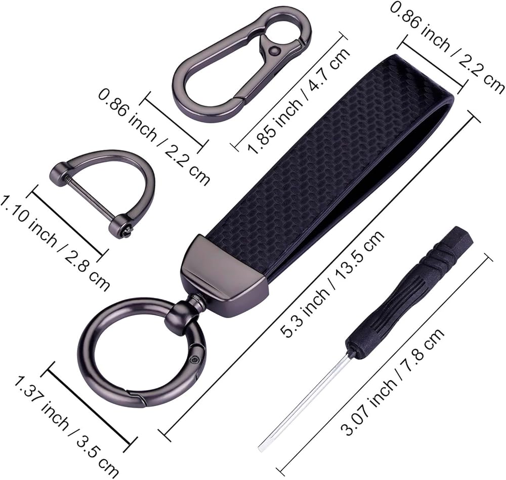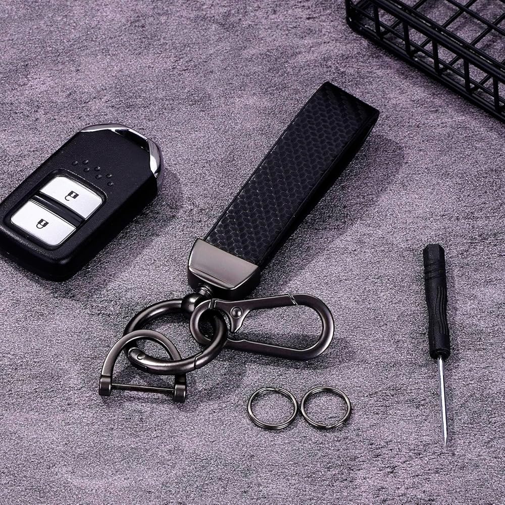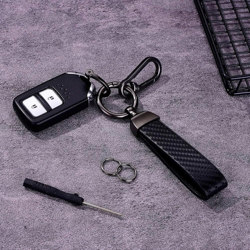 LEOLIO Carbon Fiber Car Keychain, Premium Key Fob for Men and Women, Functional Key Holder 360 Degree Rotatable with Anti-Lost D-Ring, 2 Keyrings, 1 Horseshoe Buckle and 1 Screwdriver (Black)