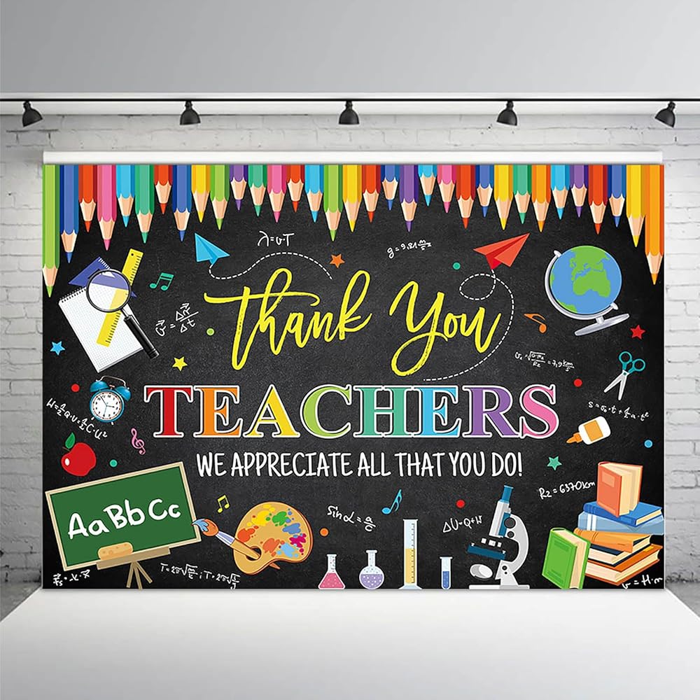 MEHOFOND 7x5ft Thank You Teachers Backdrop Banner Teacher Appreciation Week Party Background Thank You Teachers We Appreciate All That You Do Decoration Banner School Classroom Photo Booth Backdrop