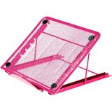Looking for a sleek, lightweight, functional adjustable stand for your iPad, tablet, or laptop? Need an extra sturdy and reliable book stand for your desk? Trying to get rid of issues that can permanently damage your hardware because of a hot laptop? Want to get rid of neck and back pain caused by long hours hunched over your laptop? Look no further than the Halter Ventilated Adjustable Tablet / Laptop and Book Stand. It'll prop up your books and keep your laptop running cooler with its metal mesh ventilated panels and gives you 6 different viewing positions, so you can adjust your foldable book stand to your needs. Features: - Sleek ventilated metal mesh design which keeps your laptop nice and cool. Improve your airflow and guide the heat away from your laptop. - 6 different adjustable viewing positions. Whether you are looking to type something out, read for hours, or sit comfortably and watch a movie, this has you covered. - Anti-Slip feature keeps your laptop in place while protecting any surface it is placed on Dimensions: 9.5"" (left to right) 7.5"" (top to bottom)