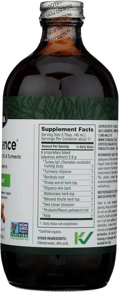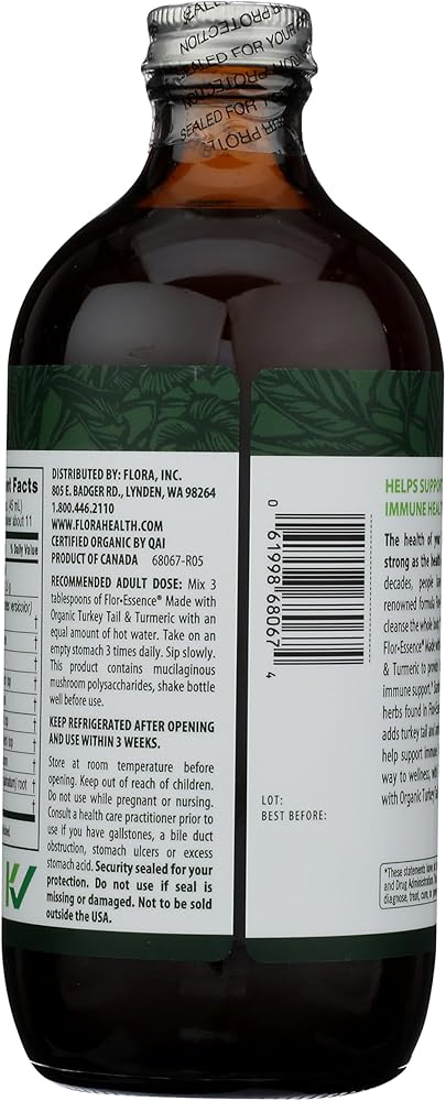The health of your body is only as strong as the health of your cells. That's why for decades, people have relied on the renowned detox formula FlorEssence to gently cleanse the whole body at the cellular level.* Now, you can trust ImmuneEssence with Turkey Tail & Turmeric to not only detoxify, but build cellular immunity too.* This formula starts with the great-8 herbs found in our original FlorEssence formula: burdock root, sheep sorrel, slippery elm, watercress, blessed thistle, red clover blossom, rhubarb and kelp. It then adds immune-modulating turkey tail and antioxidant turmeric to fortify immunity, from the cells on up.* *Certified Organic