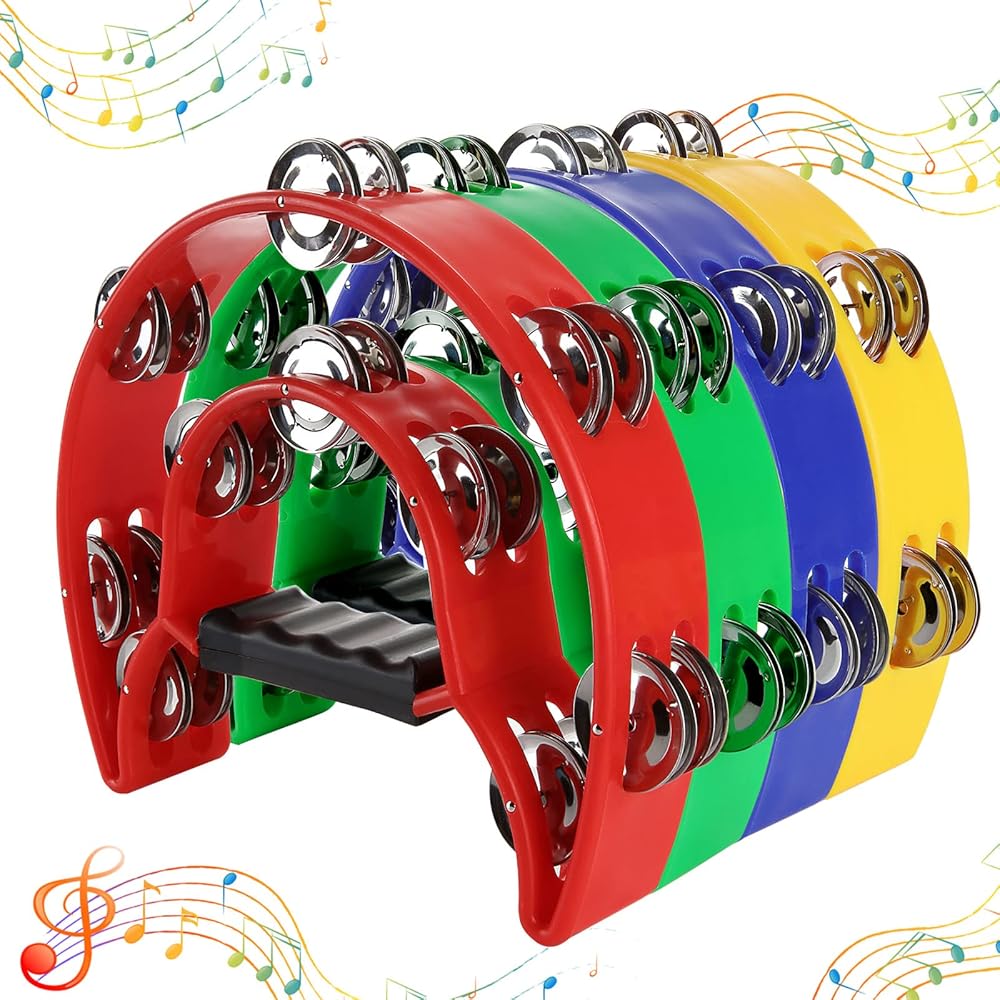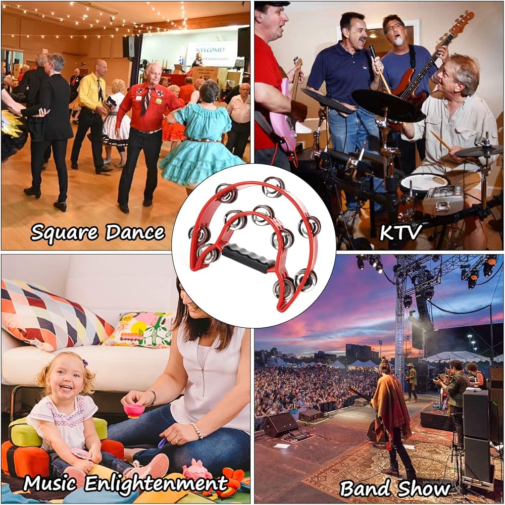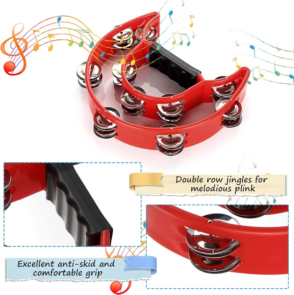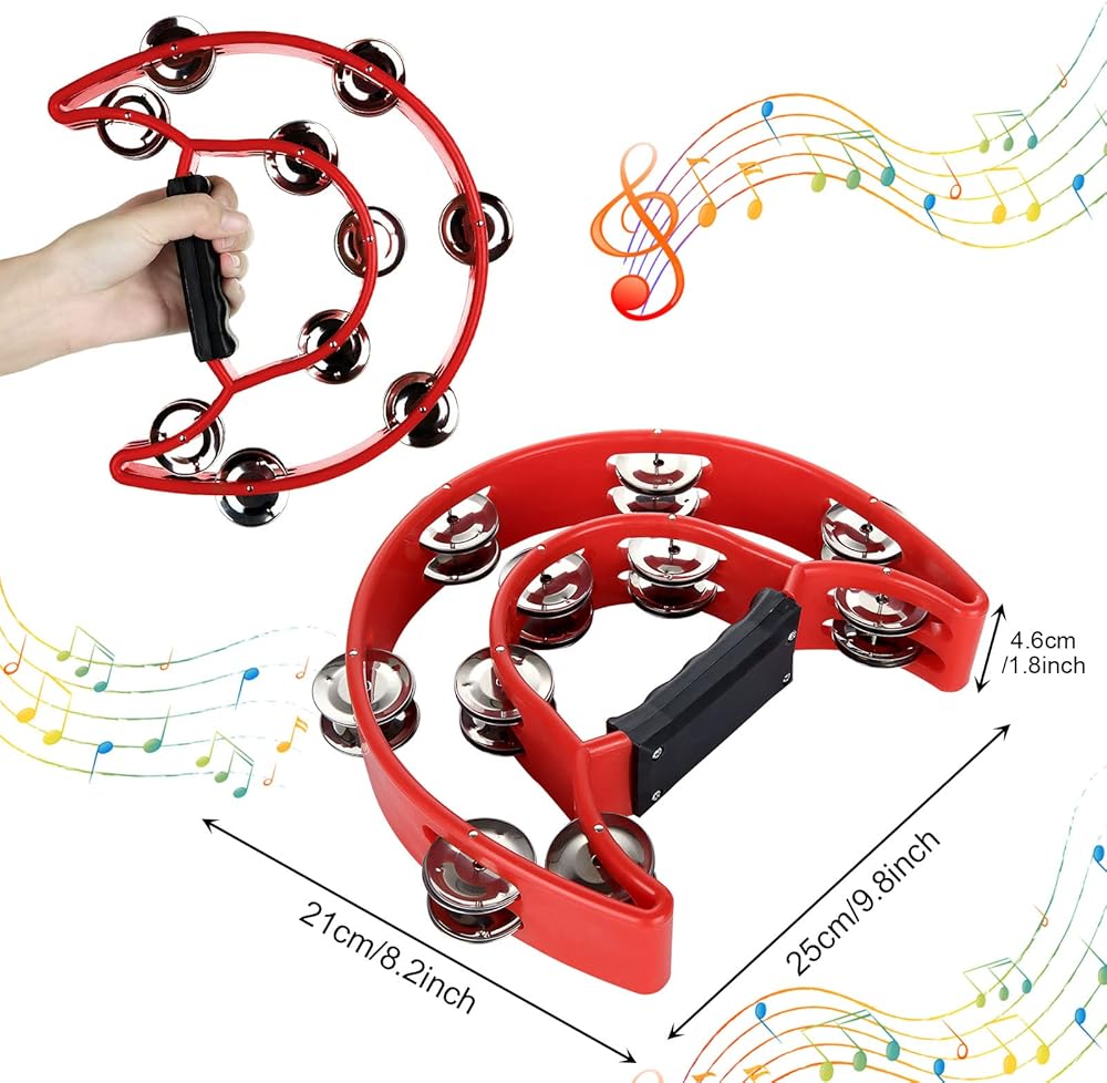 【Specifications】4 x Black Half Moon Tambourine, each grip tambourine is 20pcs Jingles. Size: 25 x 22 cm / 9.8 x 8.7 ",semicircle design.