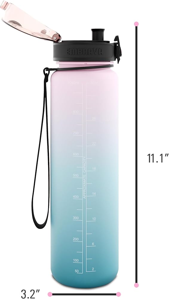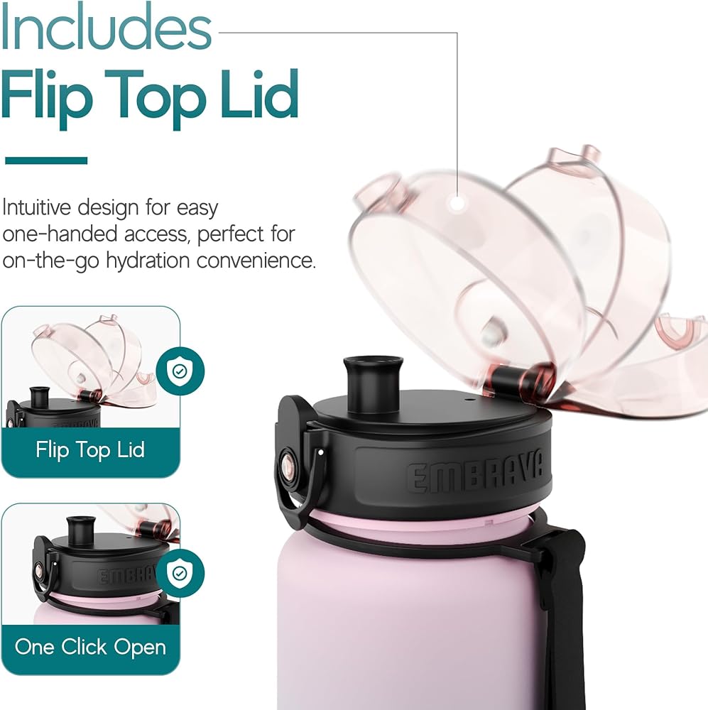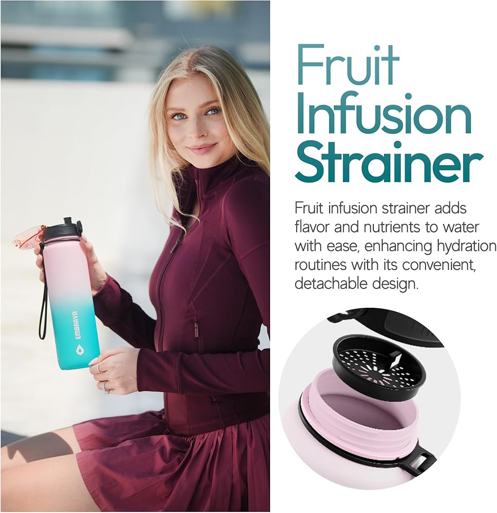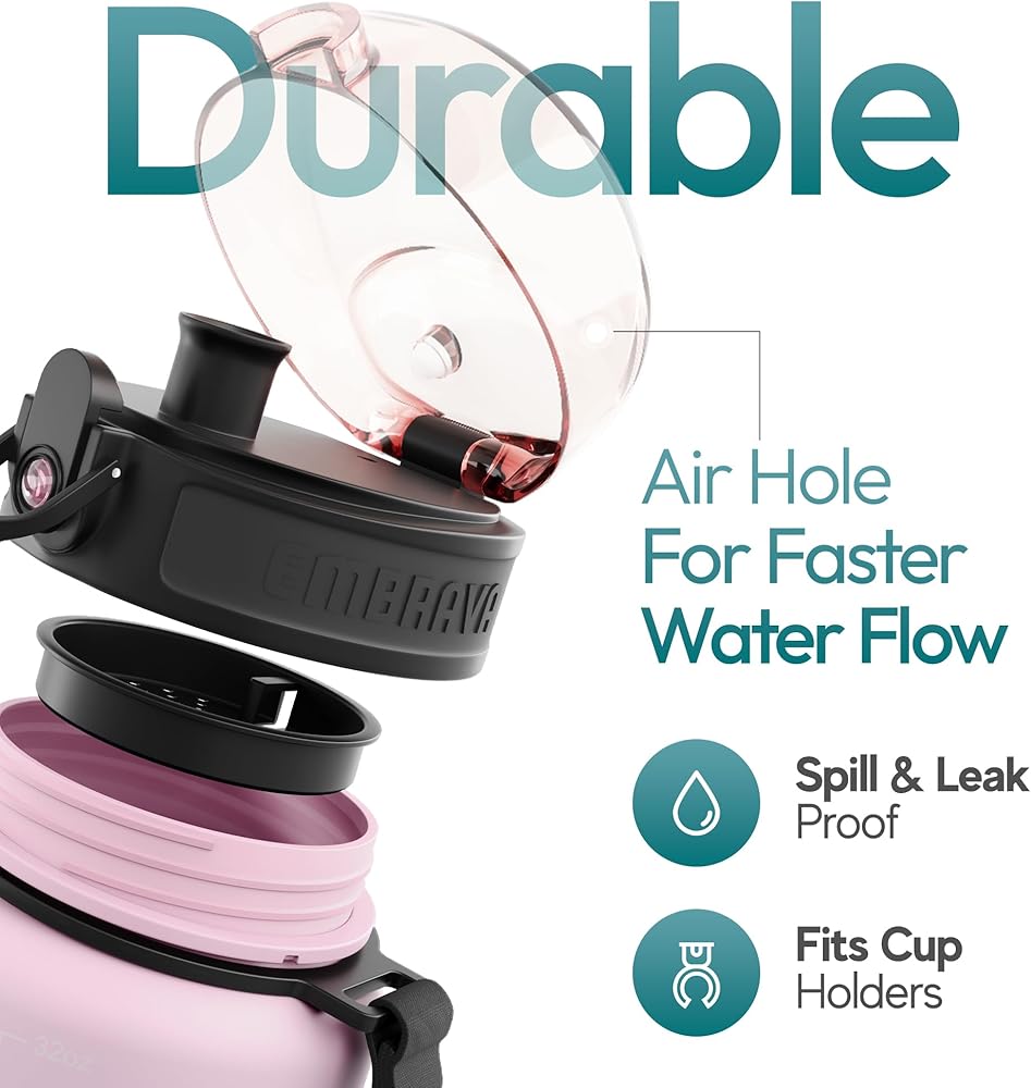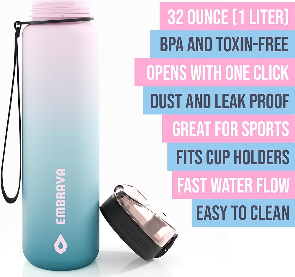 Embrava Sports Water Bottle - 32oz Large - Fast Flow Quick Sip Lid - BPA & BPS Free - Leakproof, Flip Top - Lightweight & Sturdy Tritan Plastic - Strainer for Fruit & Ice