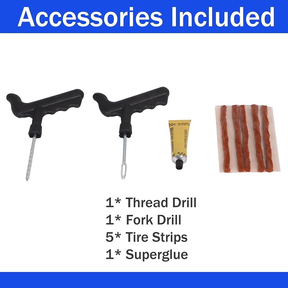 【Package Includes】Our package equipped a practical tire repair tool kit, providing timely assistance for tire blowout problems and solving your urgent needs. Including: 4* Lifting Jack Pad, 1* set of Tire Repair Tool, 1* Storage Box.