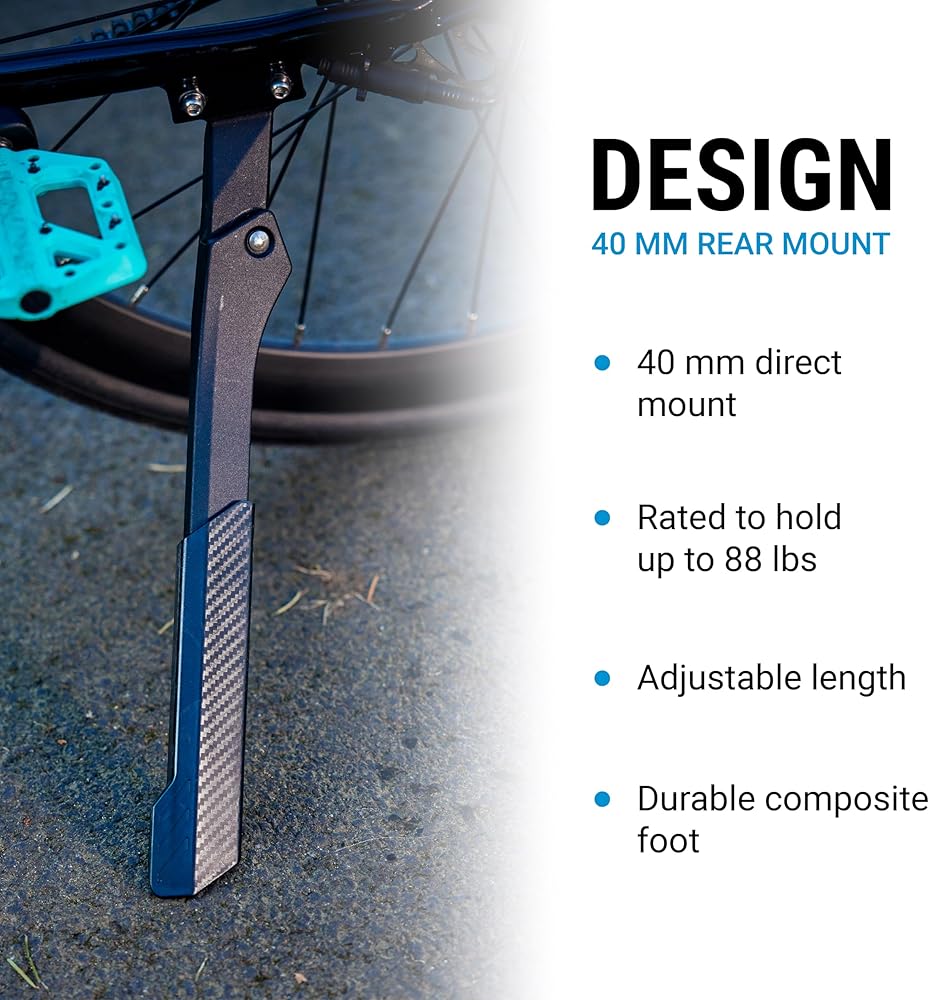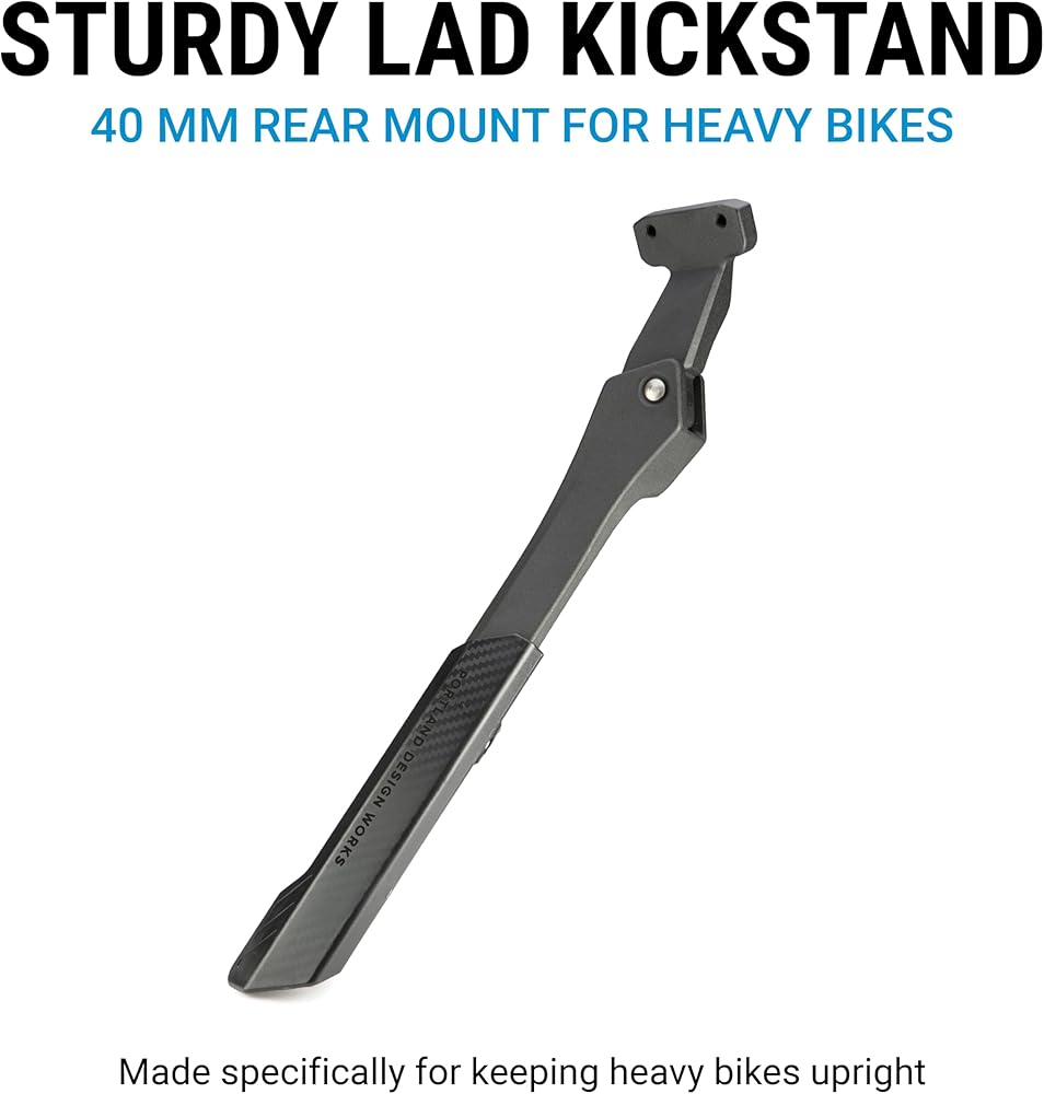 When your e-bike or cargo bike tips the scales at over 40 lbs, a wee kickstand just won't do. You need a Sturdy Lad. The Sturdy Lad is a stand-up fellow made specifically for keeping heavy bikes upright. Its length is adjustable from 13.25-17.5” and it comes in three mounting styles to fit a wide range of bike designs.