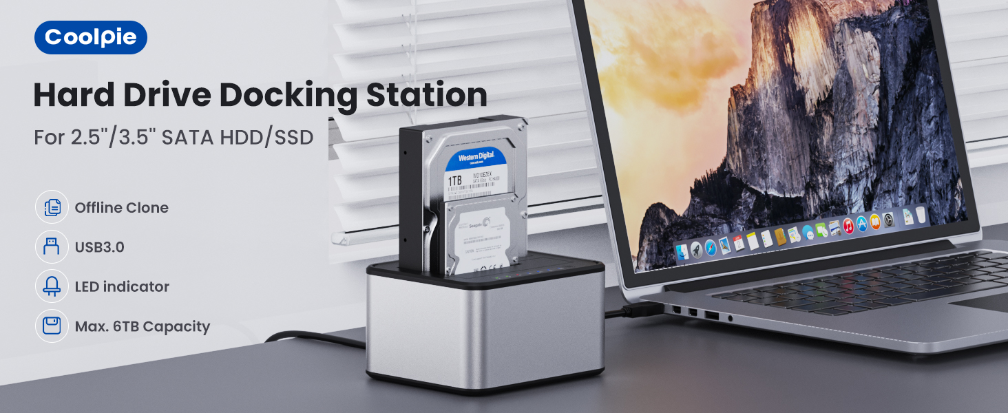 【👍✔User-Friendly Design】: The external hard drive reader is equipped with an intuitive progress bar display light, letting you keep track of the copy progress at all times. The hdd docking station also supports SATA3 reading and writing, and can insert two hard drives simultaneously for a more efficient work experience.