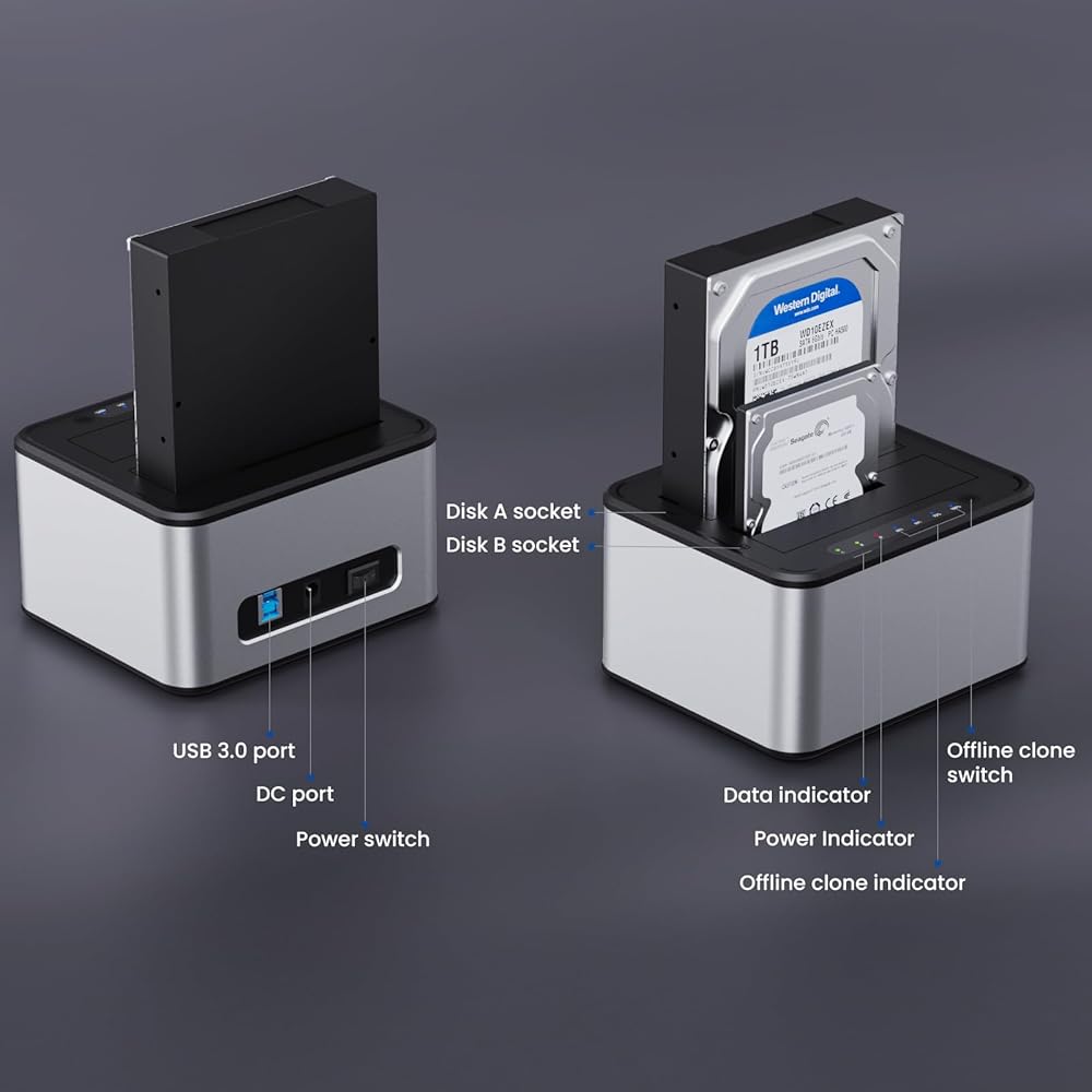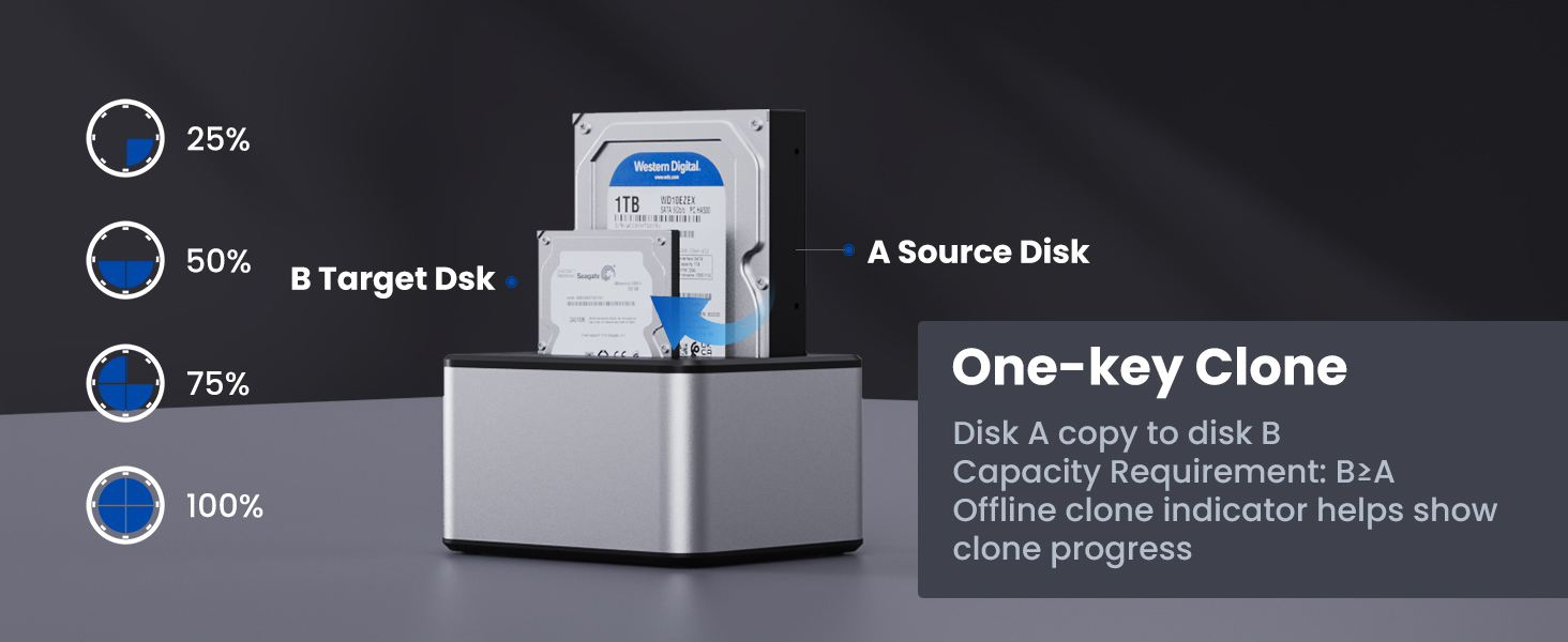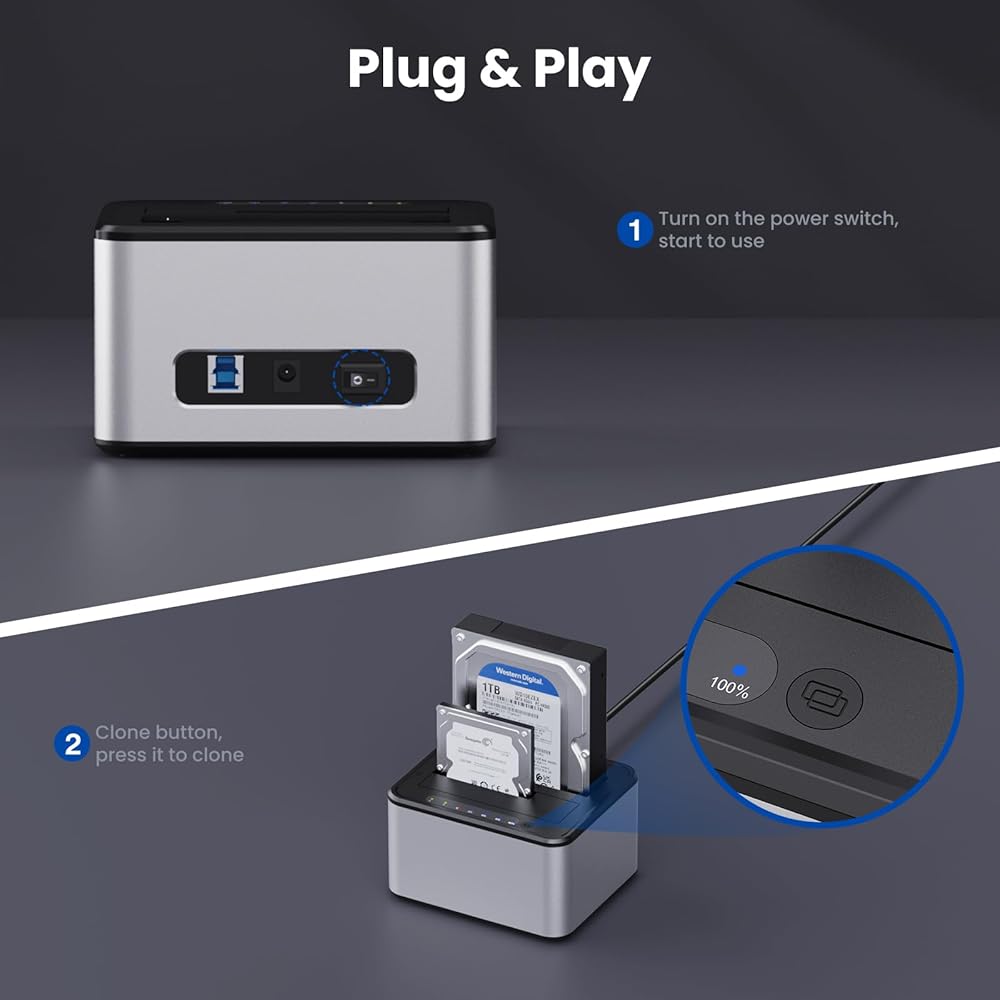 【💎⛪Massive Storage】: Single disk supports a maximum capacity of 6TB, whether you need to store large amounts of data, high-definition videos, or large software, this hard drive cloner can meet all your needs.