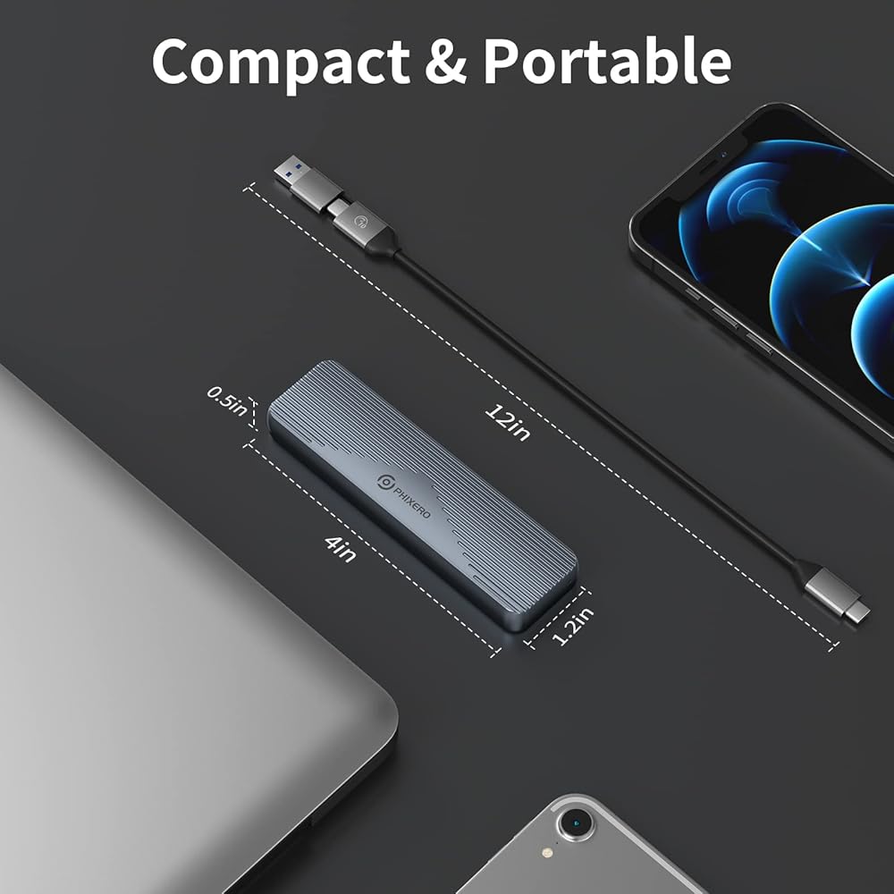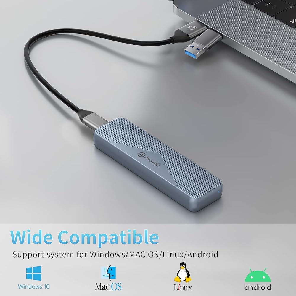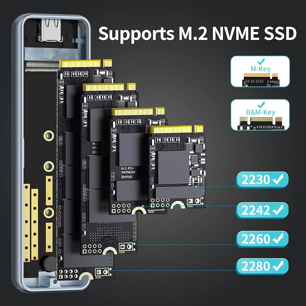 PHIXERO NVME Enclosure, Aluminum M.2 NVMe SSD Enclosure, Triple Heat Dissipation, USB 3.1 Gen 2 (10Gbps) with 2 in 1 USB C Cable for M Key/B+M Key NVME SSD, Size 2280/2260/2242/2230 (Gray)