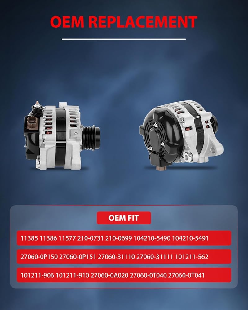 cciyu Alternators 11385 Fit for 2009-2013 For Toyota Corolla 1.8L 2009-2010 For Toyota Matrix 1.8L 2009-2010 For Pontiac Vibe 1.8L 210-0731 210-0699 104210-5490 104210-5491 27060-0P150