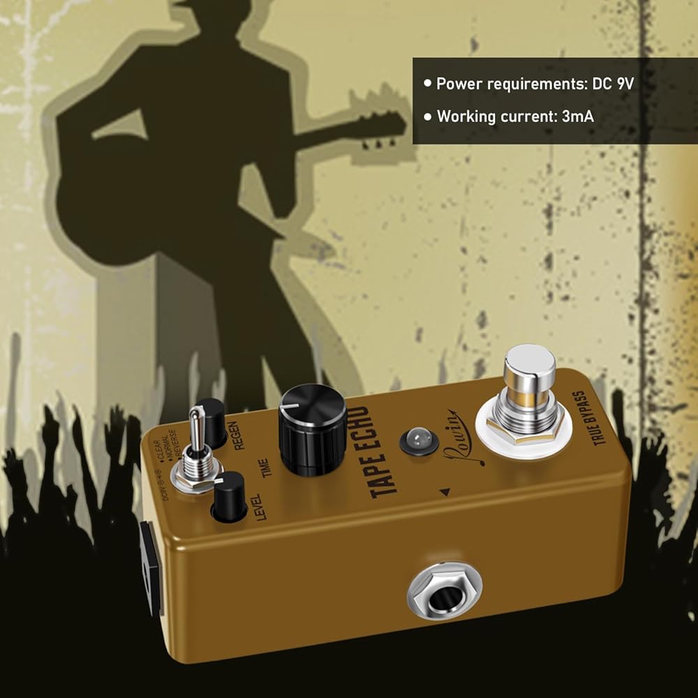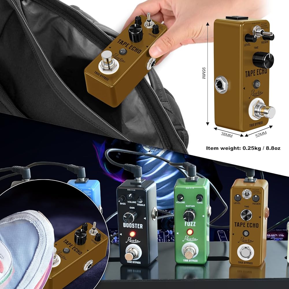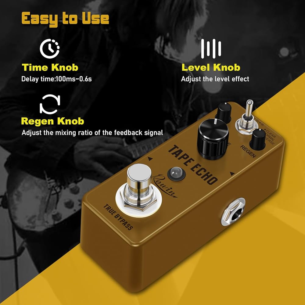 ▶ Like many delay pedals, the Rowin Tape Echo has a conventional layout with simple controls that are set out in a way that makes it easy for any guitarist to assemble.
