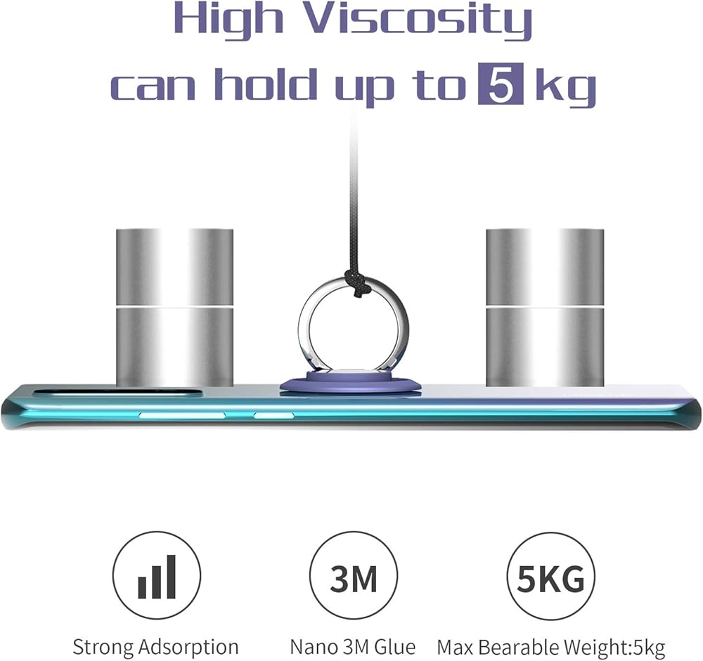 ✔【Durable Material】: High viscosity, strong sticky adhensive makes sure the ring be attached tightly to the back of your phone/tablet. The few sticky residue left after detaching can be wipe off by rubbing alcohol easily.(Please do NOT pull the finger ring stand after you stick it on your phone, because the adhesive is not sticky enough within the next 24 hours.)