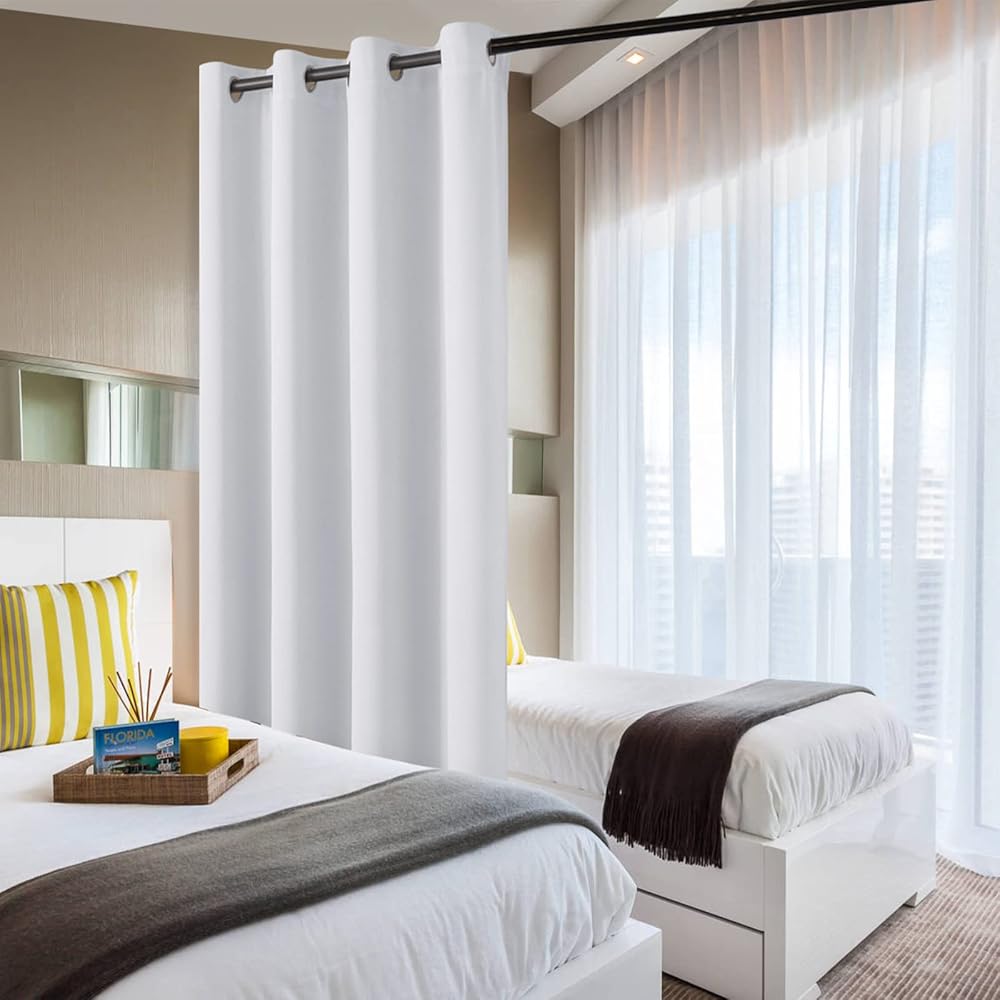 SPACE PARTITIONING SOLUTION: Featuring an extra wide width, these curtains are designed for room partition and management. They can be used in Patio Sliding Doors, Large Windows, Shared Bedroom, Apartment, Storage, Studio, Dorms, Loft, Office Workspace, High Ceilings, Factories, Hospitals, Cafes, and Hotels.