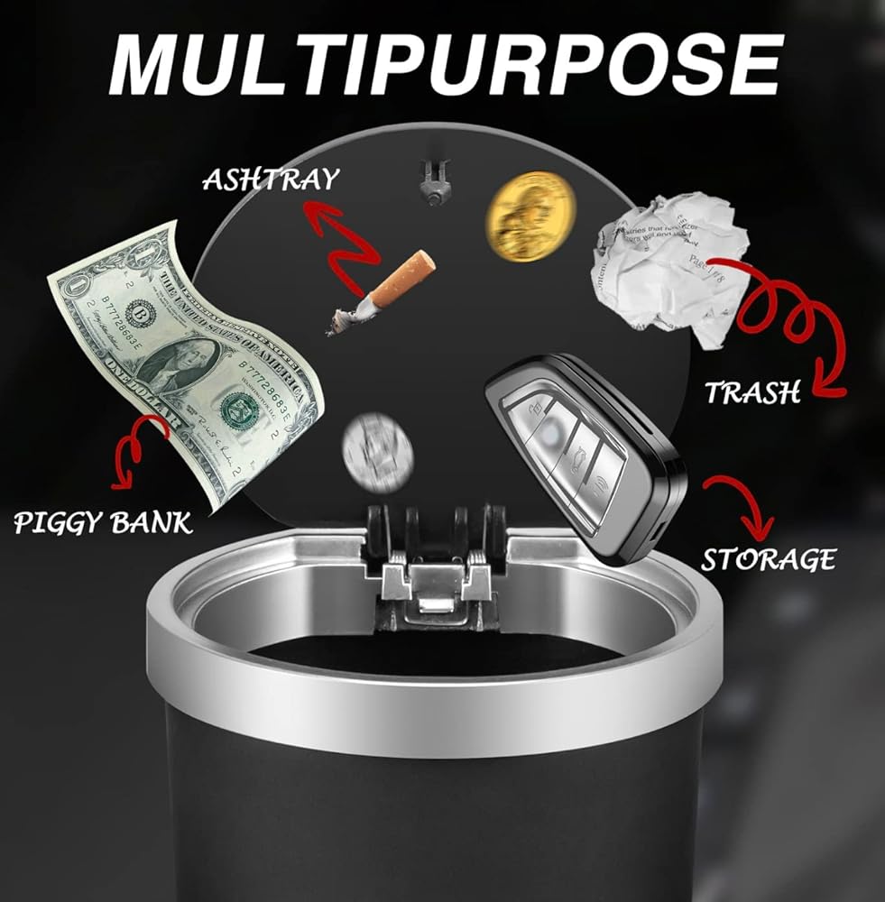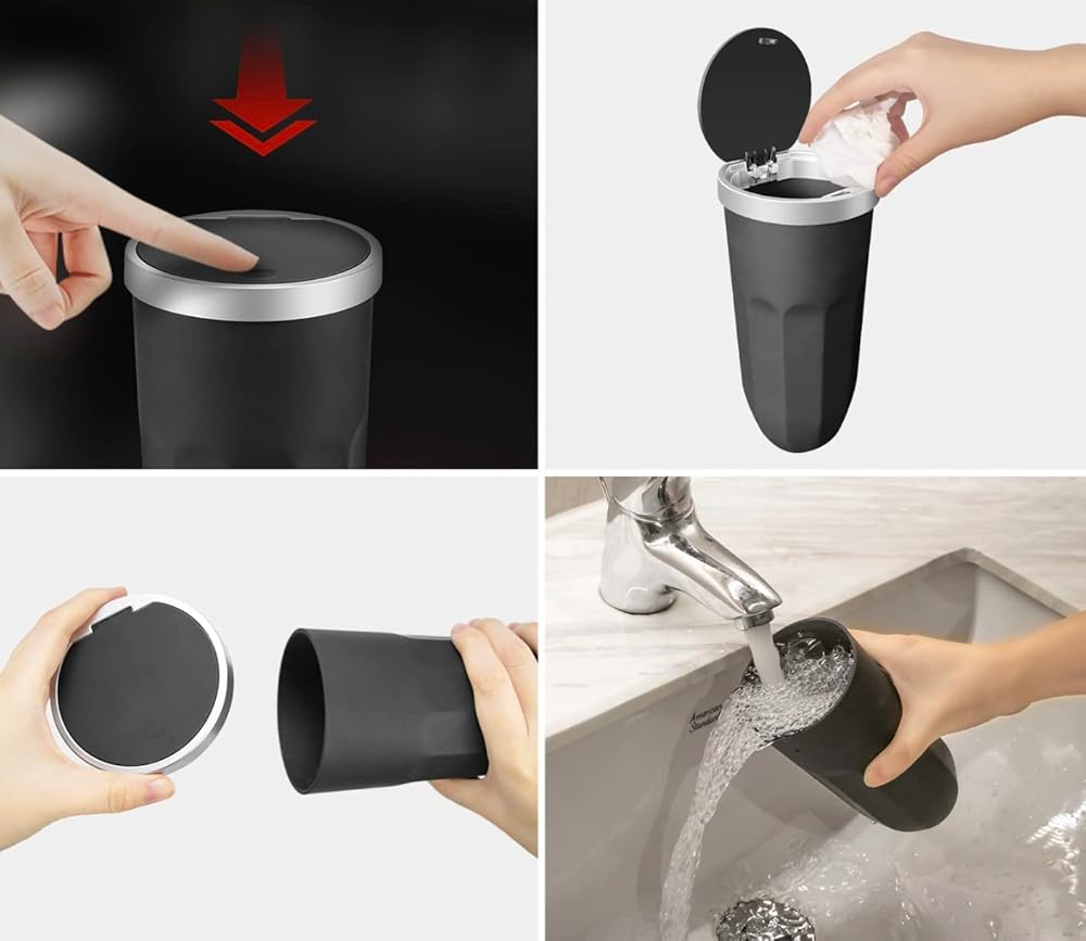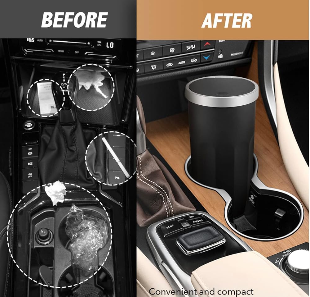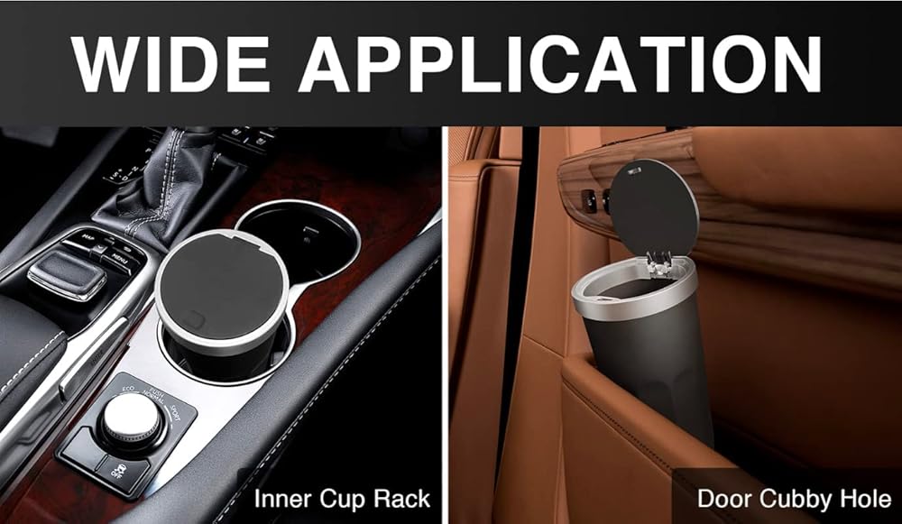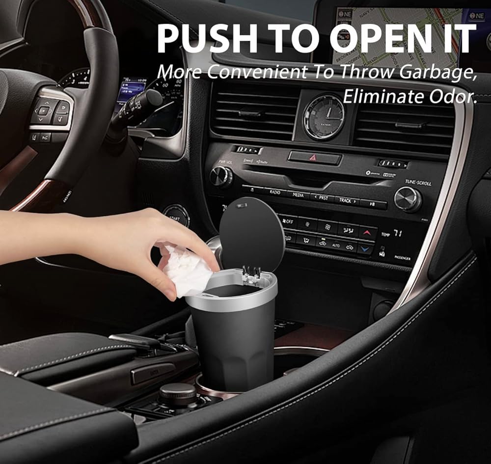 This in car rubbish bin has been designed to fit as many vehicles as possible. Ideally in the cup holder but it can also fit in side pockets, behind seat storage, squeeze between the seats etc. Versatile and multi-functional design: The mini car rubbish bin can be used in cars, trucks, SUVs, vans, and on desktops in the office, kitchen, living room, and bedroom. Easy to use and clean: The curved design of the trash can is comfortable to grab and it is easy to open and close with just one touch. It is made of durable, environmentally friendly ABS material that is easy to clean. Multi-purpose use: The car garbage can also doubles as a coin bank, receipt storage, umbrella storage, and more. This mini car rubbish bun is made of durable, environmentally friendly plastic, features a classic appearance with smooth lines, and is designed to be multi-purpose, fall-resistant, and easy to use and clean.
