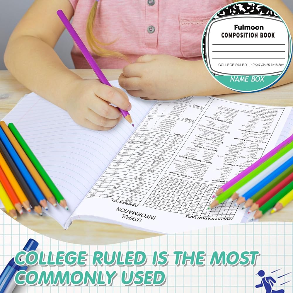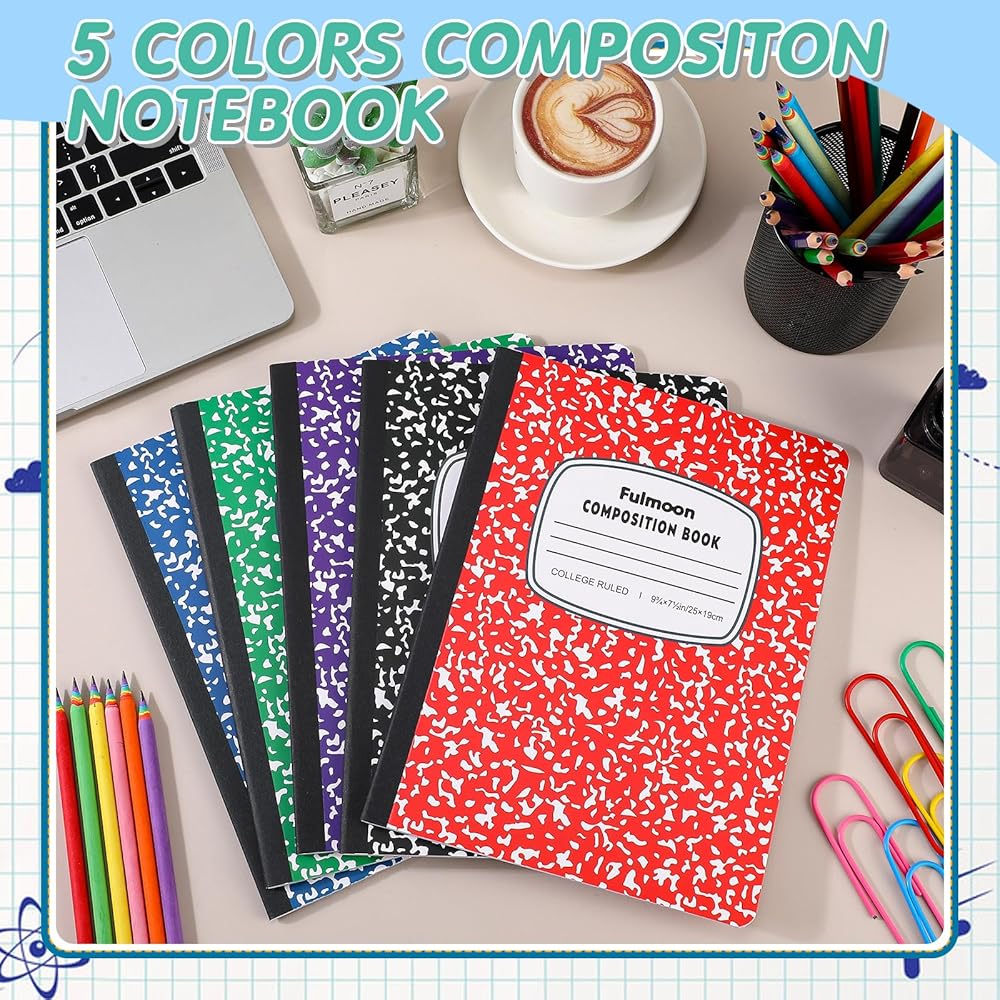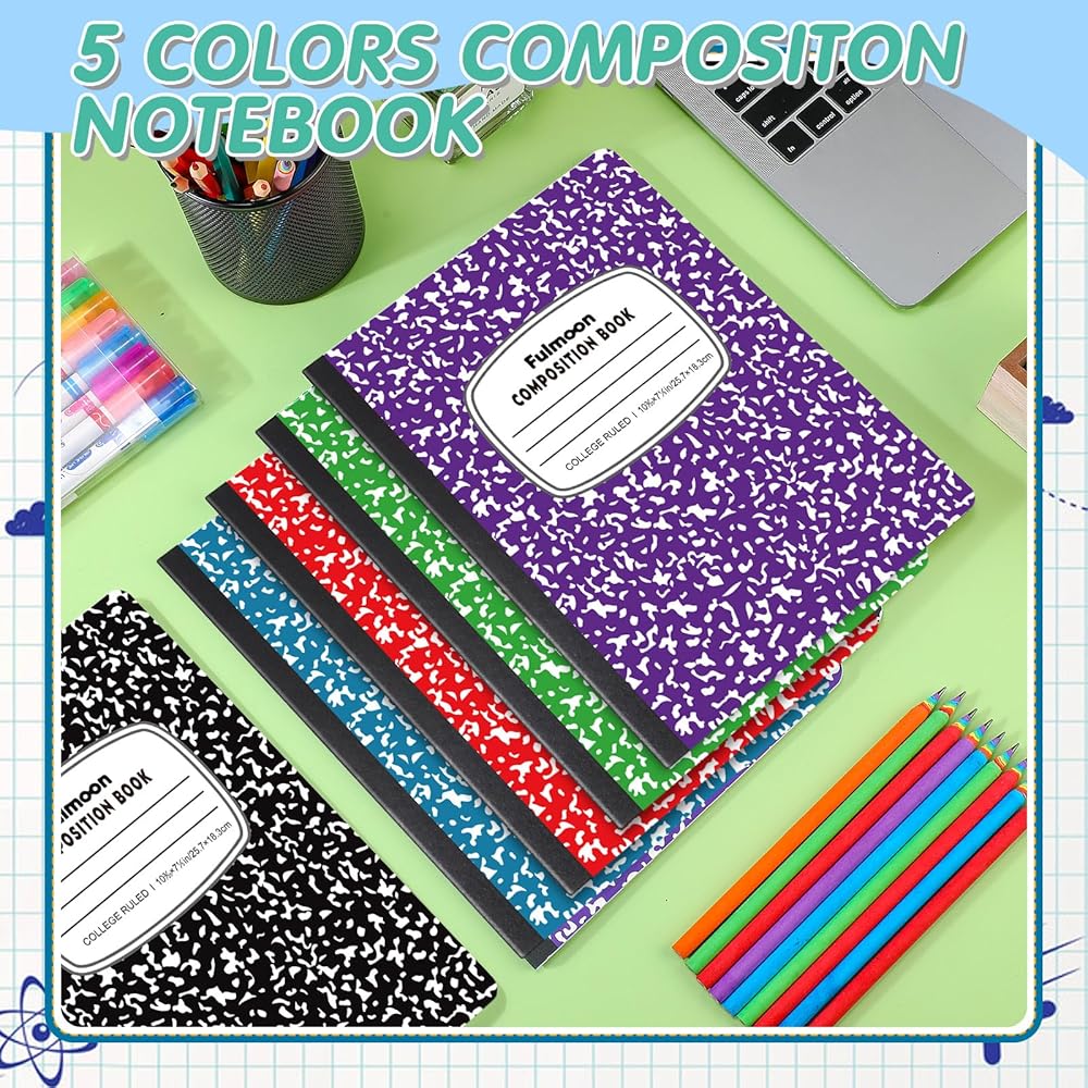 Created to last, the composition notebooks for school comes in 5 colors and has a durable sewn binding. The sewn binding ensures secure note organization. Hardcover with sewn binding protects pages, sturdy, flexible for lasting use throughout the year. Both practical and beautiful, ideal for middle school, high school, college, journals, writing projects, arts, cookbooks. Not only can it be given as classroom supplies to students, but it can also be donated to schools as gifts.