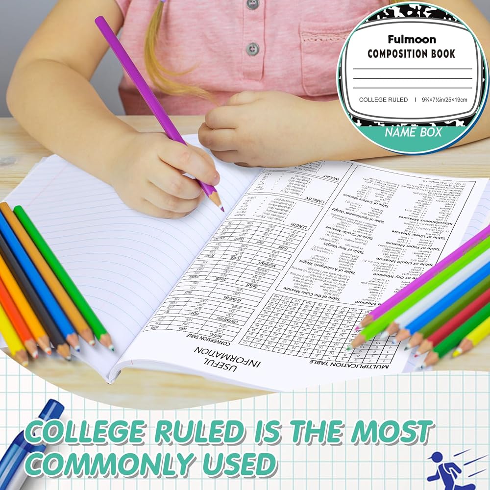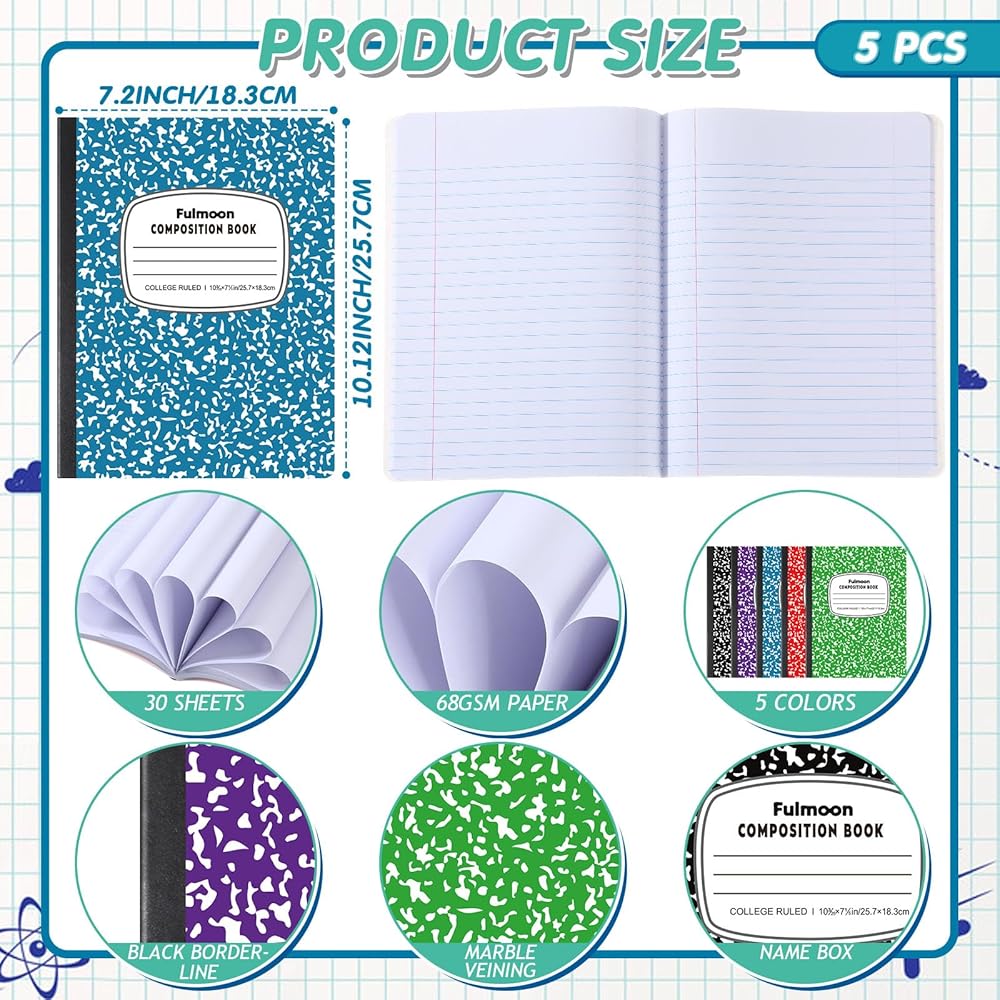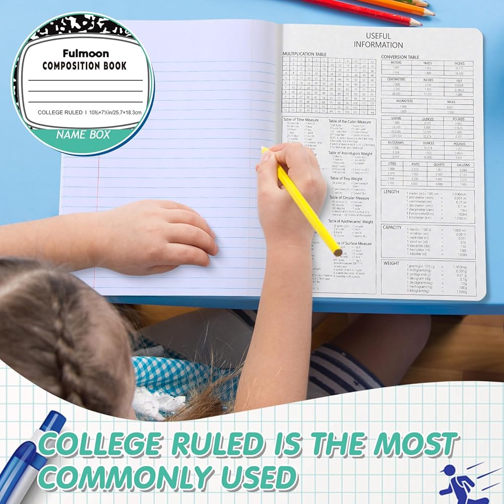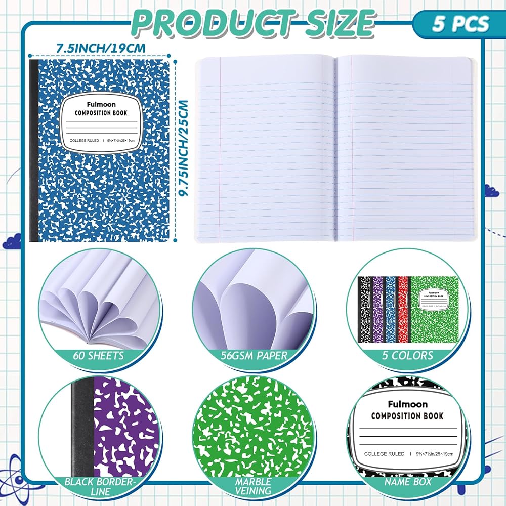 Created to last, the composition notebooks for school comes in 5 colors and has a durable sewn binding. The sewn binding ensures secure note organization. Hardcover with sewn binding protects pages, sturdy, flexible for lasting use throughout the year. Both practical and beautiful, ideal for middle school, high school, college, journals, writing projects, arts, cookbooks. Not only can it be given as classroom supplies to students, but it can also be donated to schools as gifts.