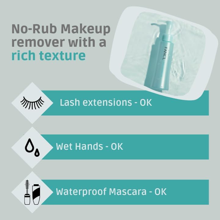 FANCL Mild Cleansing Oil, Japanese Facial Cleansing Oil, Makeup Remover, Oil Cleanser, 100% Preservative Free, Clean Skincare for Sensitive Skin (1, Blue)